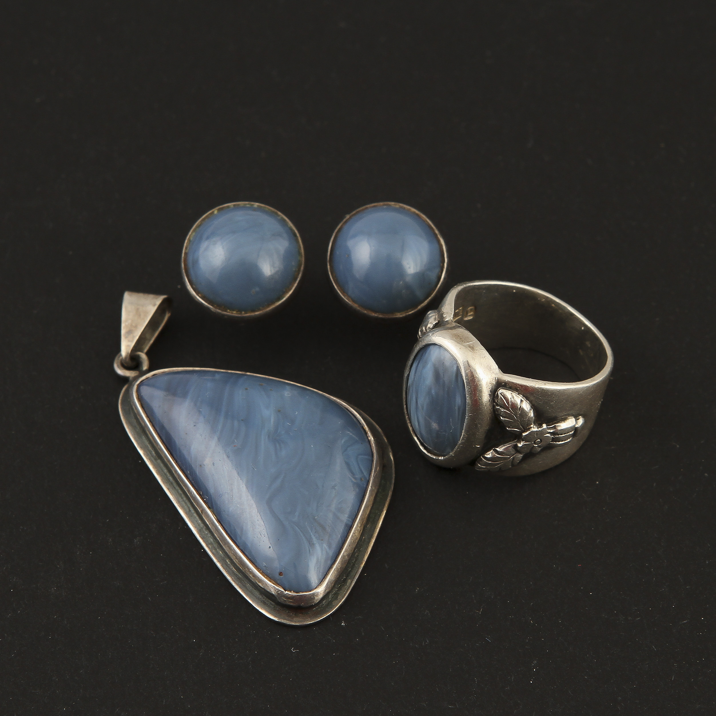 115737. Smykkesættet, 4 stk, sølv med blå sten.