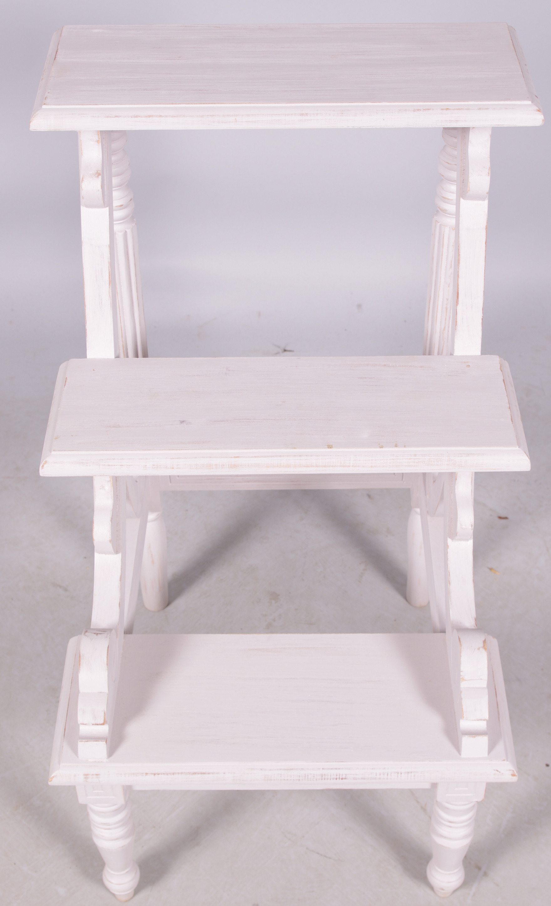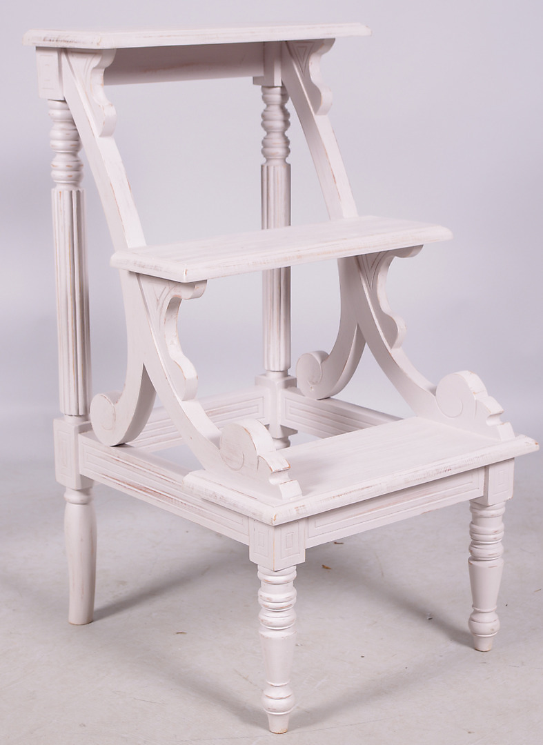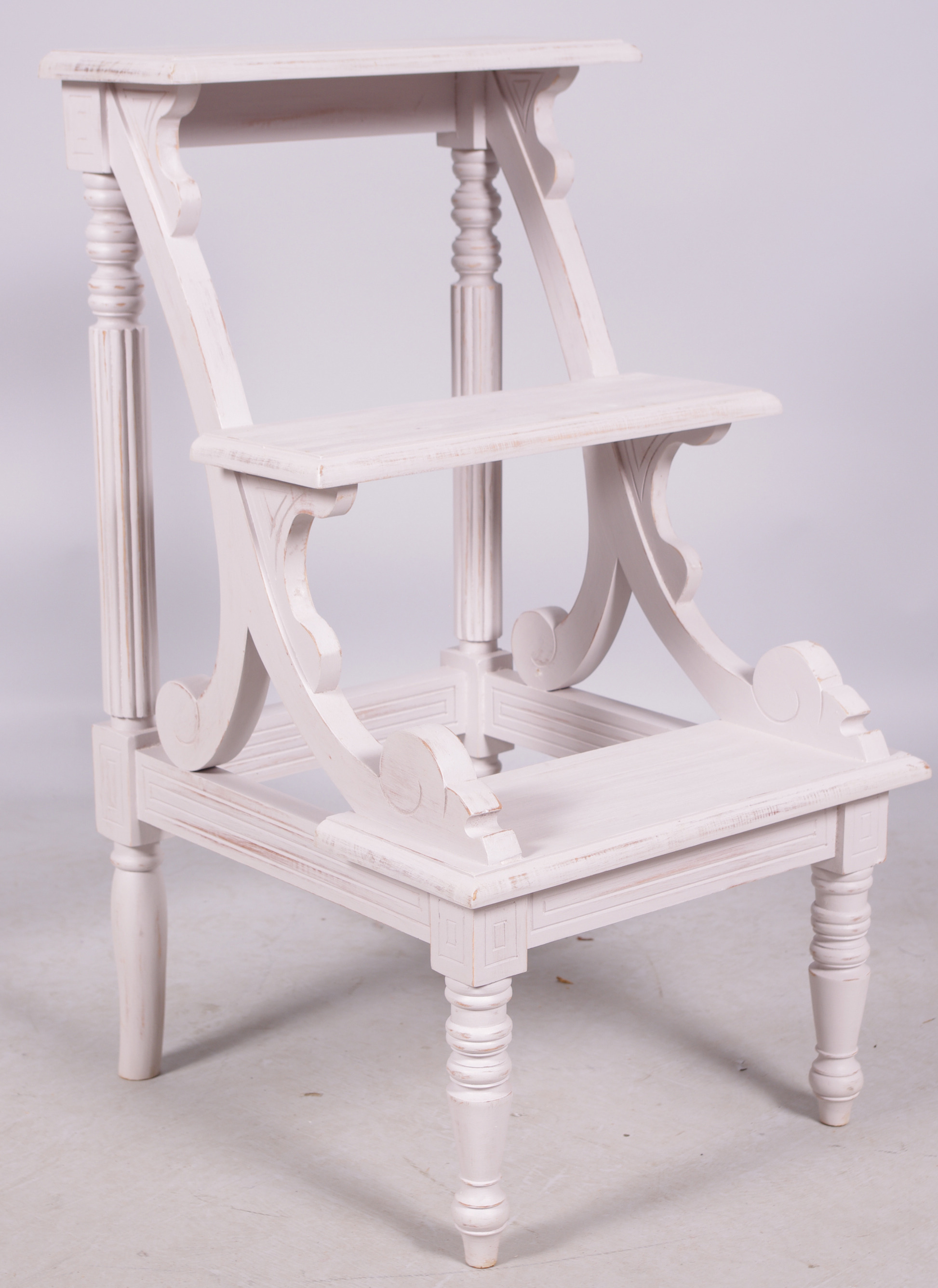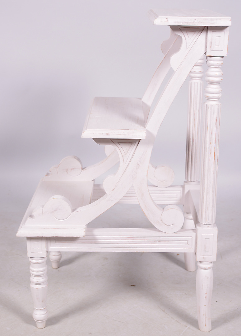 116389. BIBLIOTEKSTRAPPER, victoriansk stil, hvidmalet, moderne.