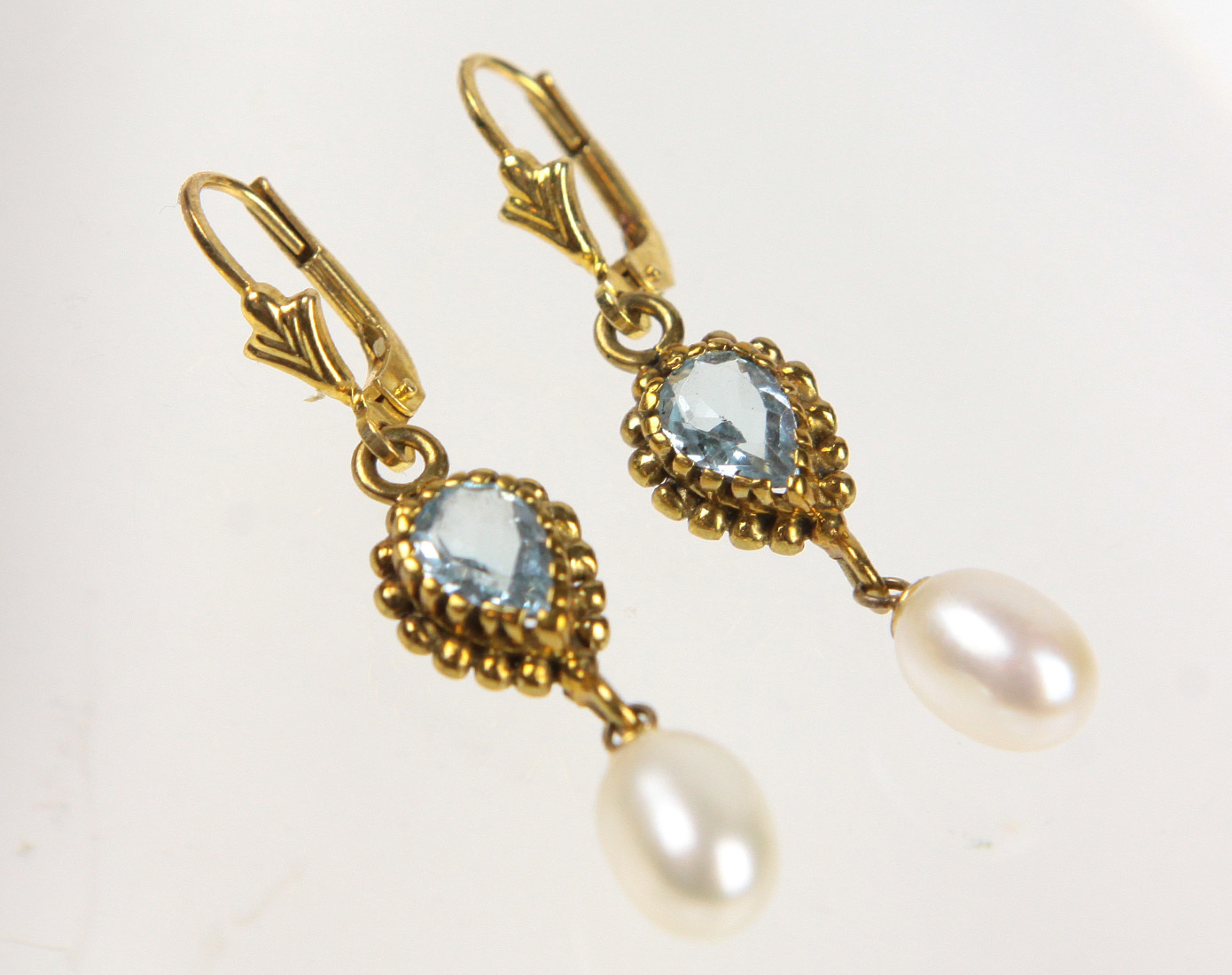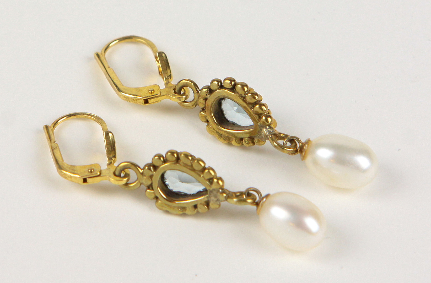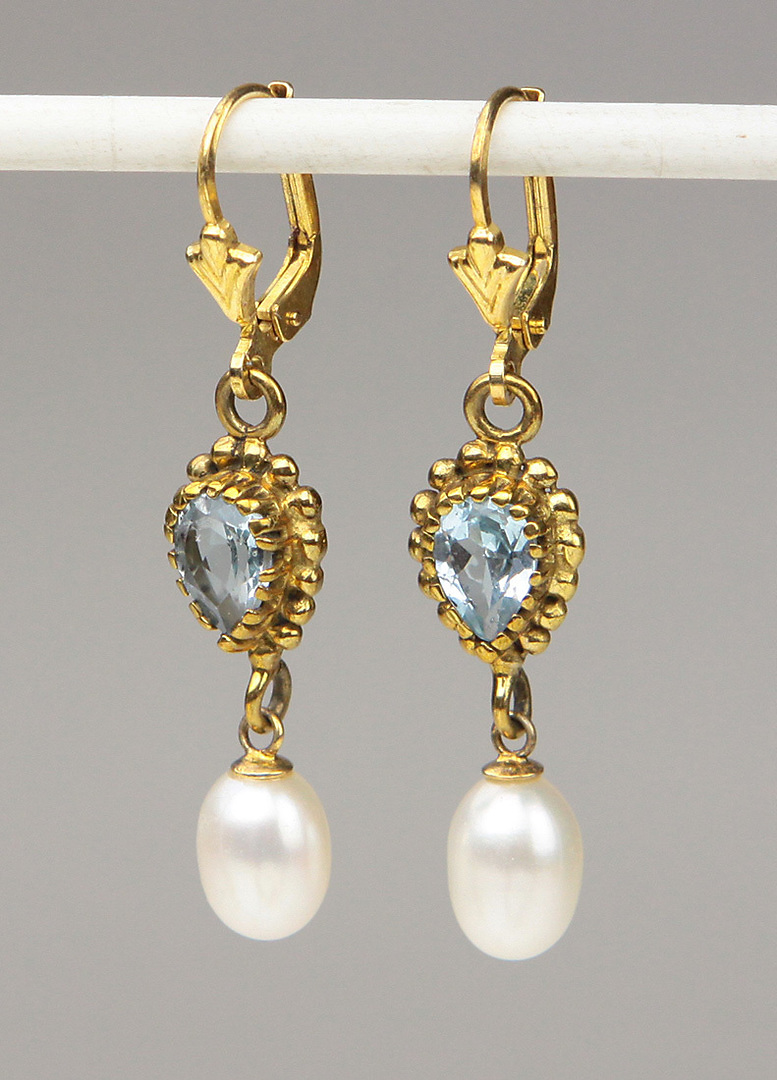 1175127. BLÅ TOPAZ PERLE ØRERINGE Sølv 925.