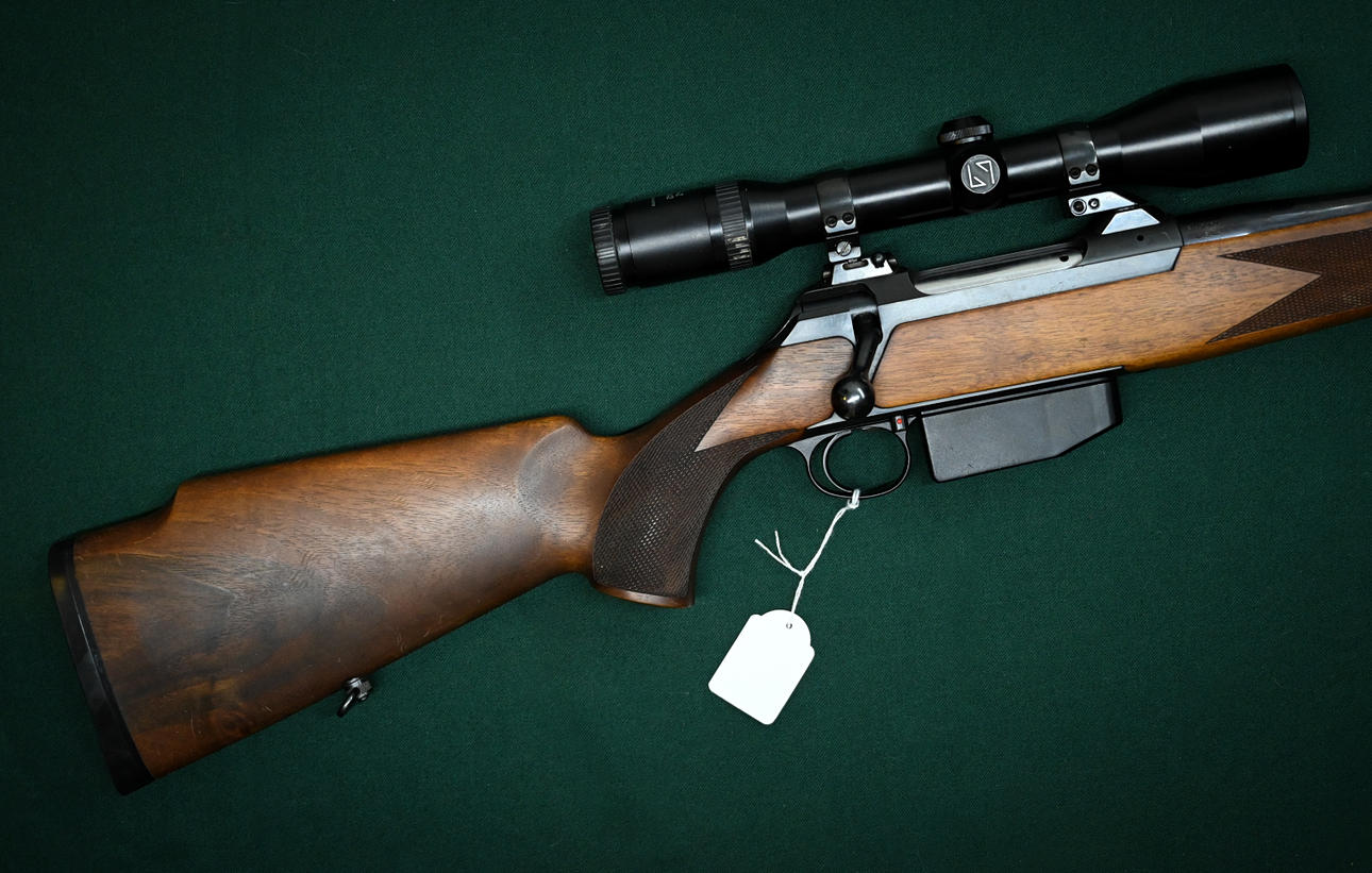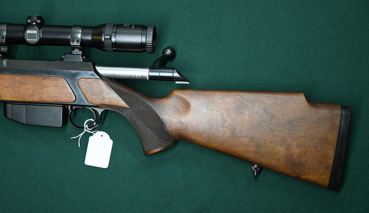 Fremstillingsnummer: H7369 Tudlængde: 60 cm Inkl. Zeiss Diavari 1,5-6x42 monteret i apple twist mount og ekstra magasin.