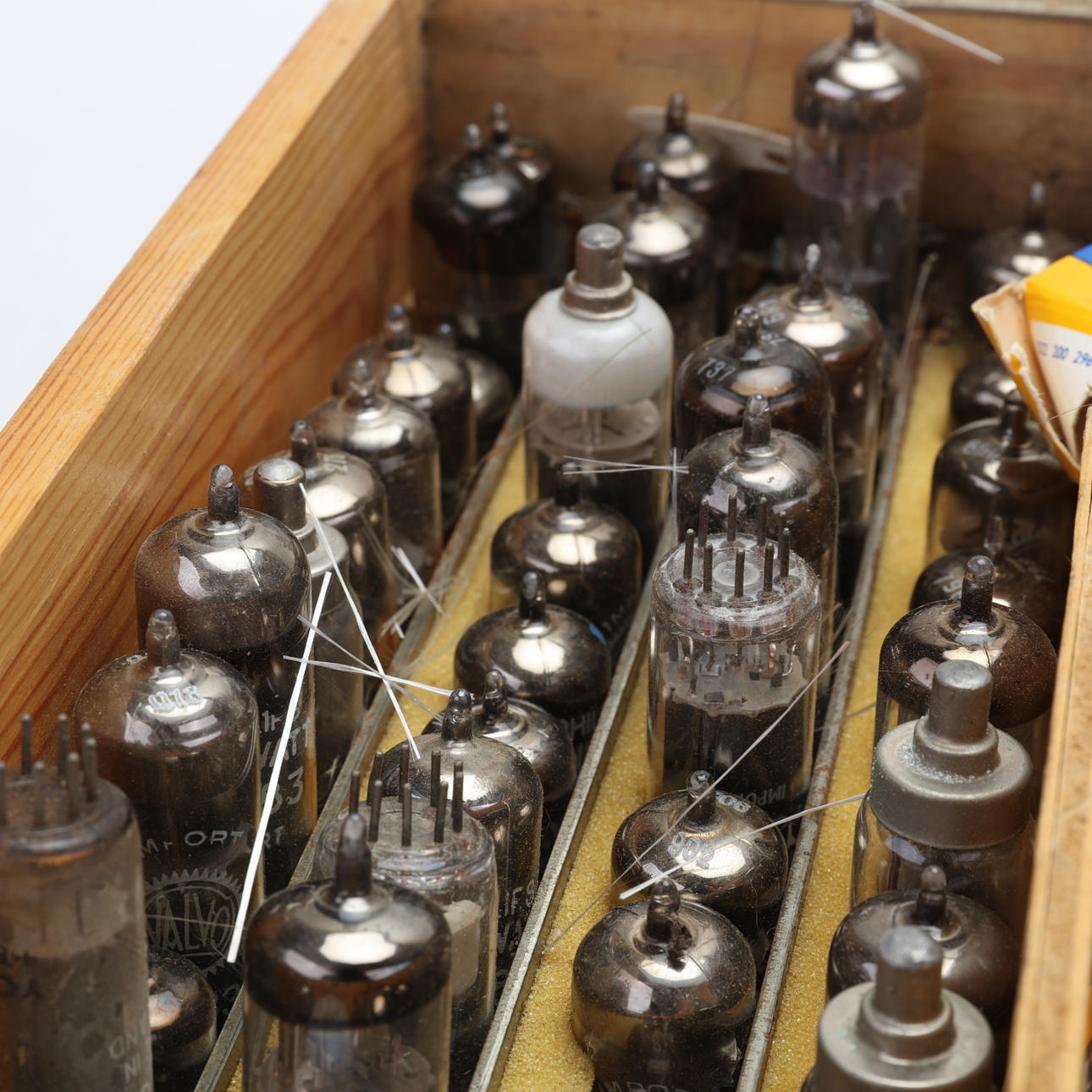 Omkring 100 rør samt en mængde kondensatorer og modstande.