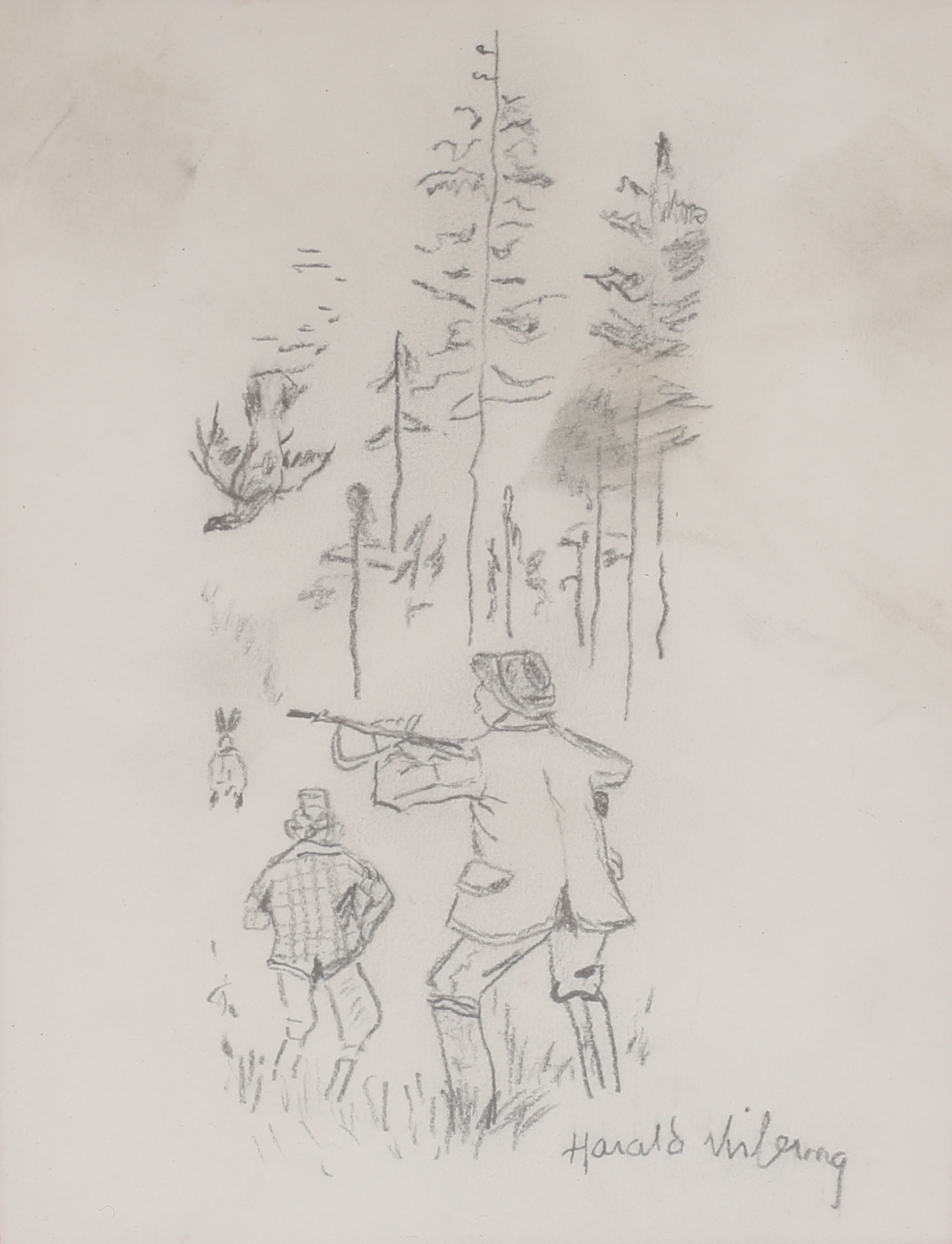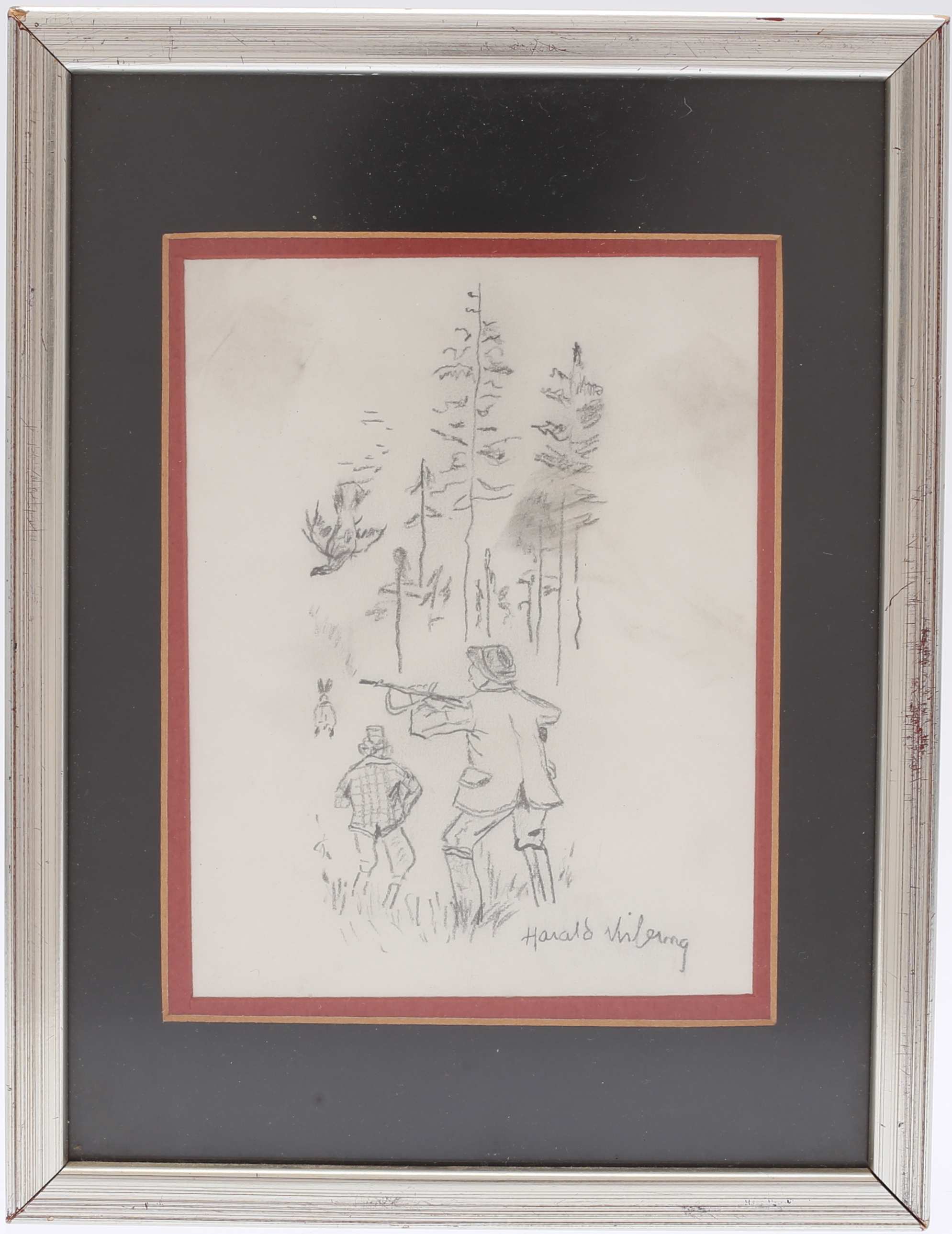 1184482. HARALD WIBERG. Jæger, tegning, signeret.
