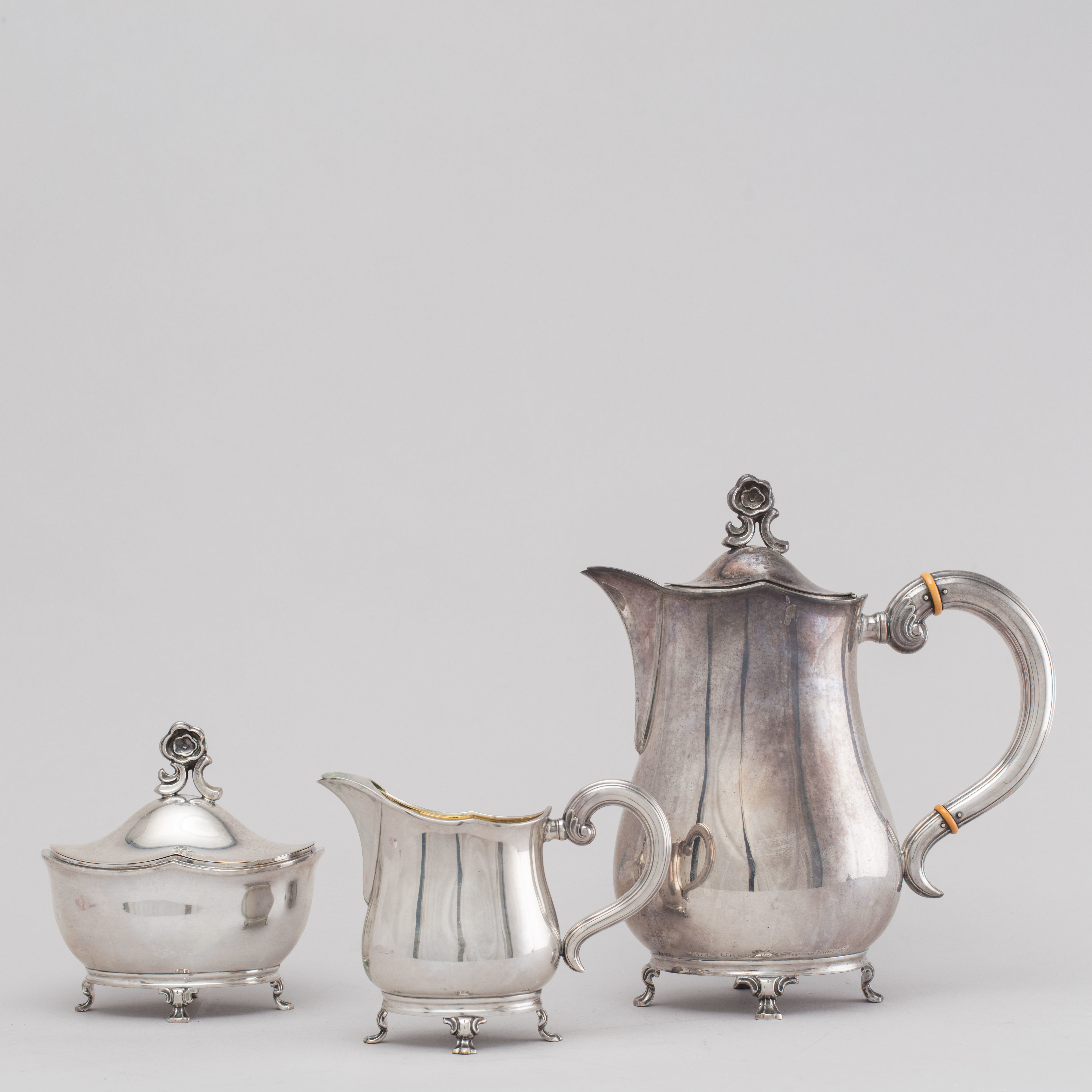 1184933. KAFFESÆT, 3 dele, sølv, CGH.