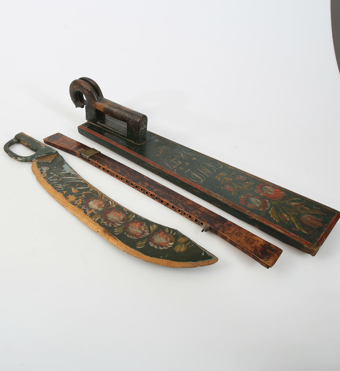 Skafttræ, længde 60 cm Klappetræ, længde 68 cm Webstrammer, længde 60,5 cm.