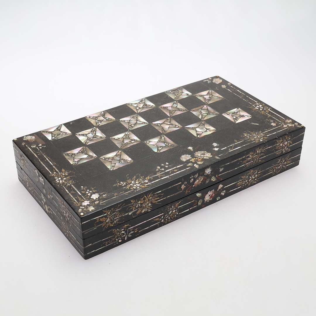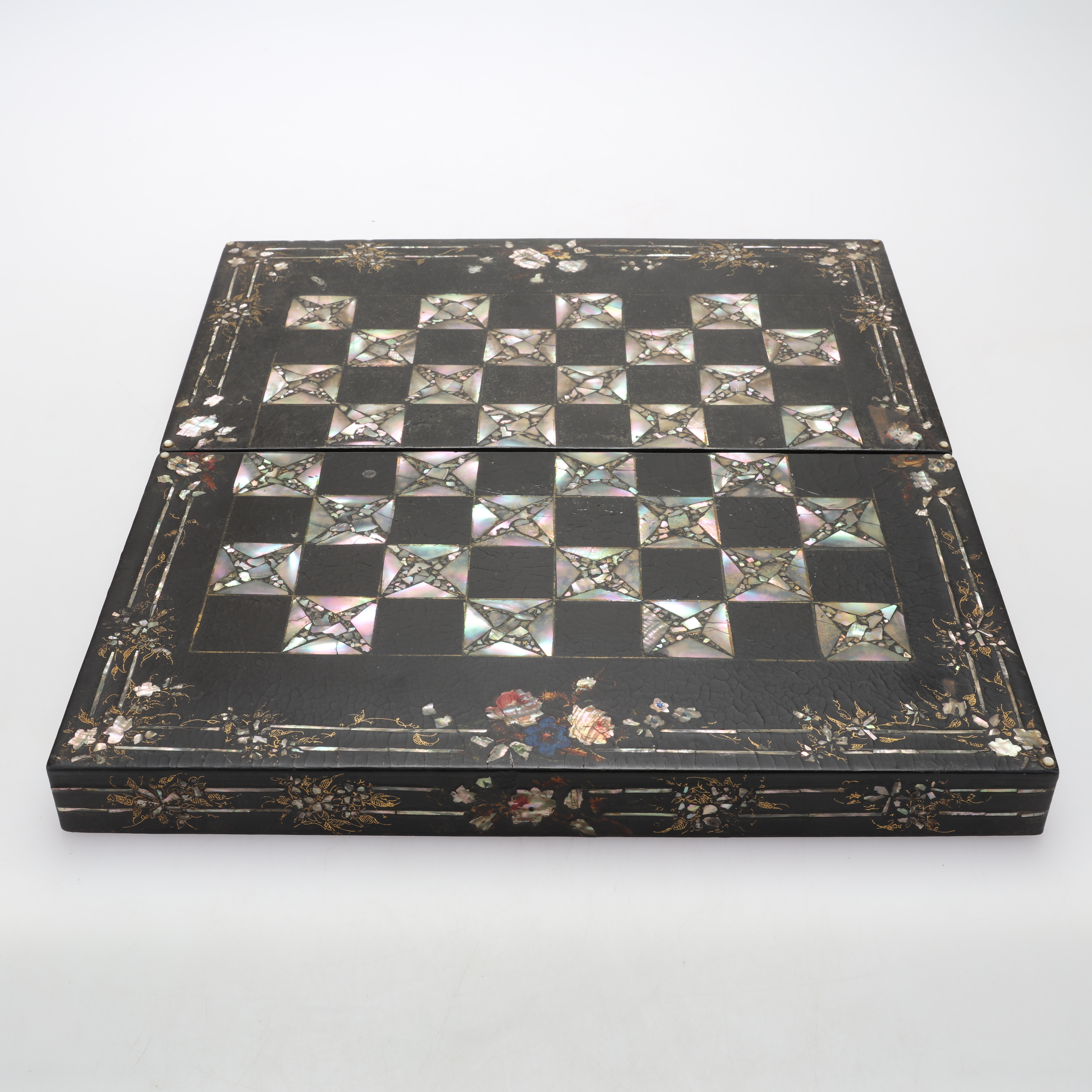 1185614. BRÆTSPIL, skak, backgammon, træ, perlemor.