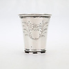 Mester i Göteborg 1692-1698, Lidköping 1699-1703 Årstal G Indvendig forgyldt, dekoration med monogram, højde 82 mm, diameter ved mundingen 75 mm.