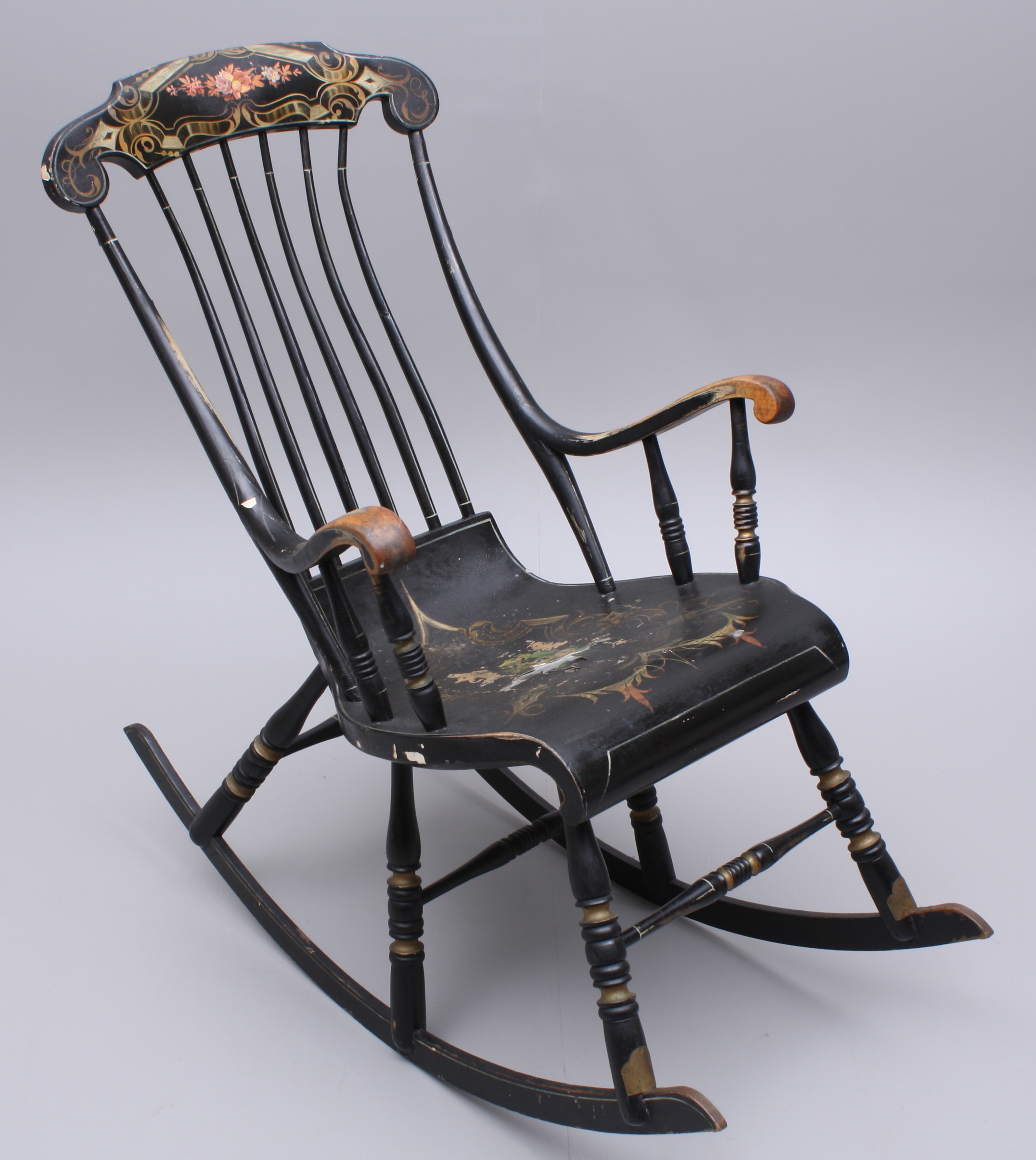 119739. ROCK STOL, træ/sort, dekorativ malet.