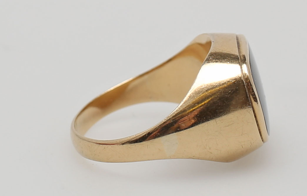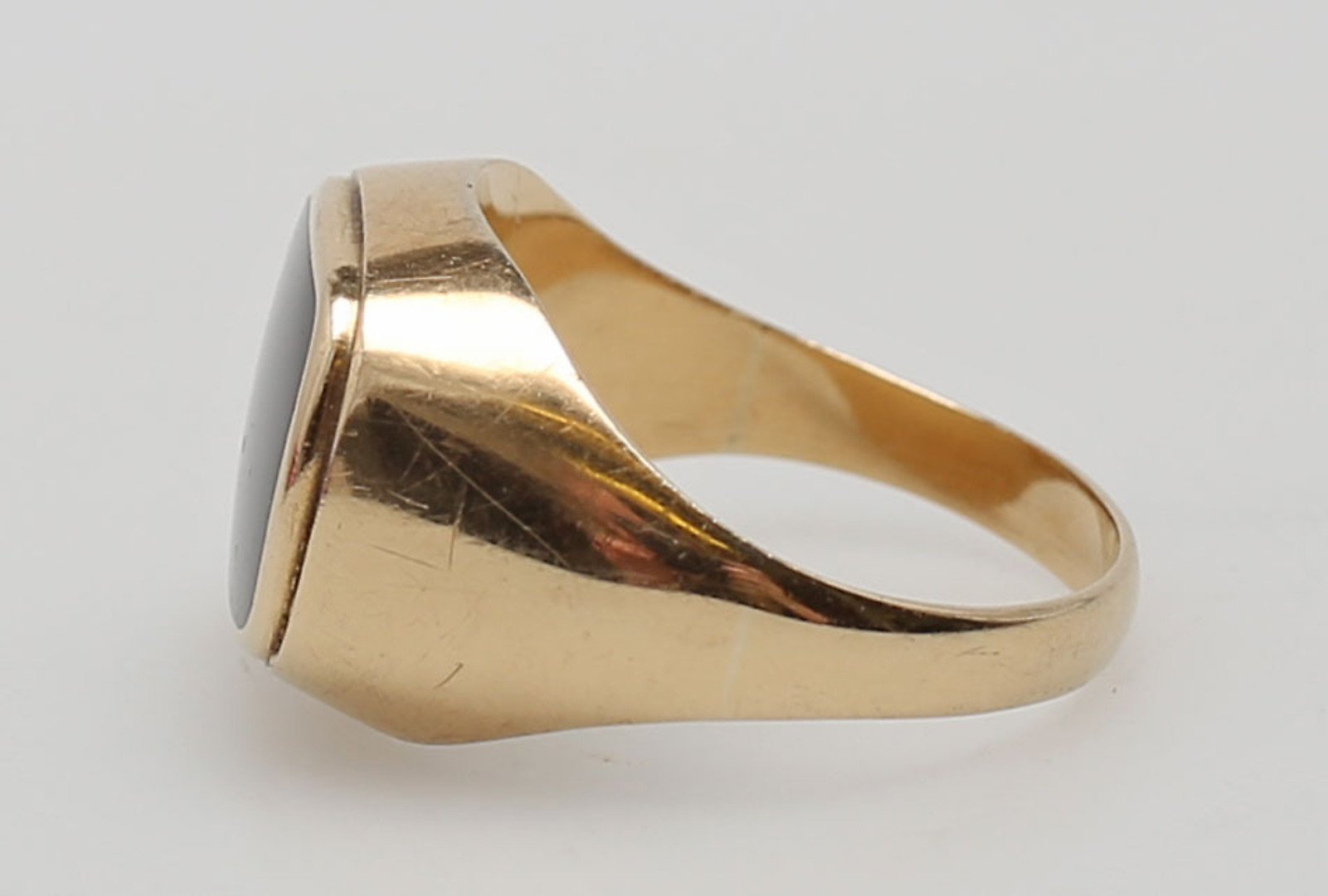 119974. Signetring MED ONYX PLADE, rødguld, 14K.