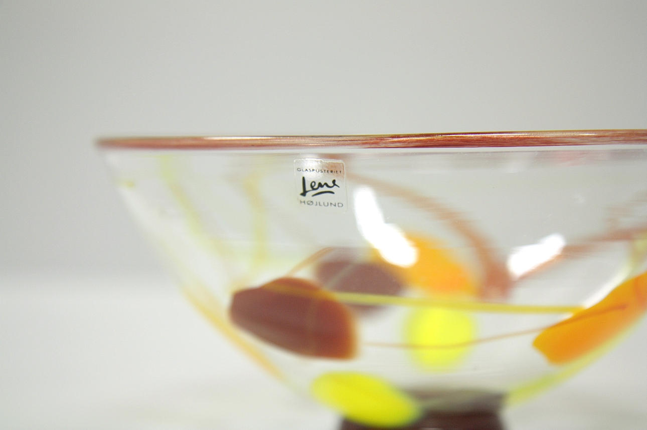 LENE HØJLUND. skål, glas, glaspusteriet, sign.
