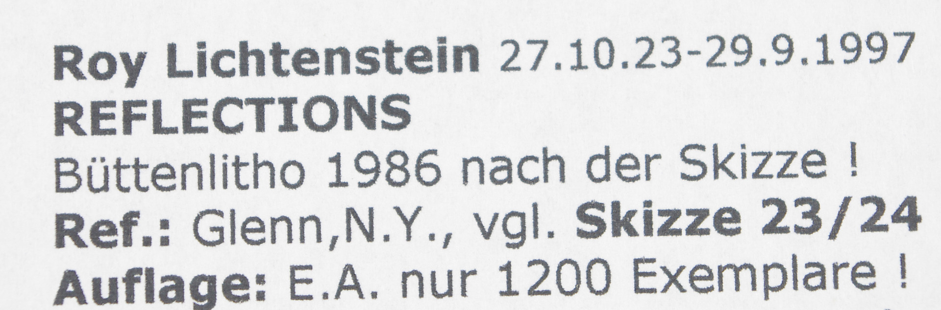 120244. ROY LICHTENSTEIN. litografi efter skitse, refleksioner.