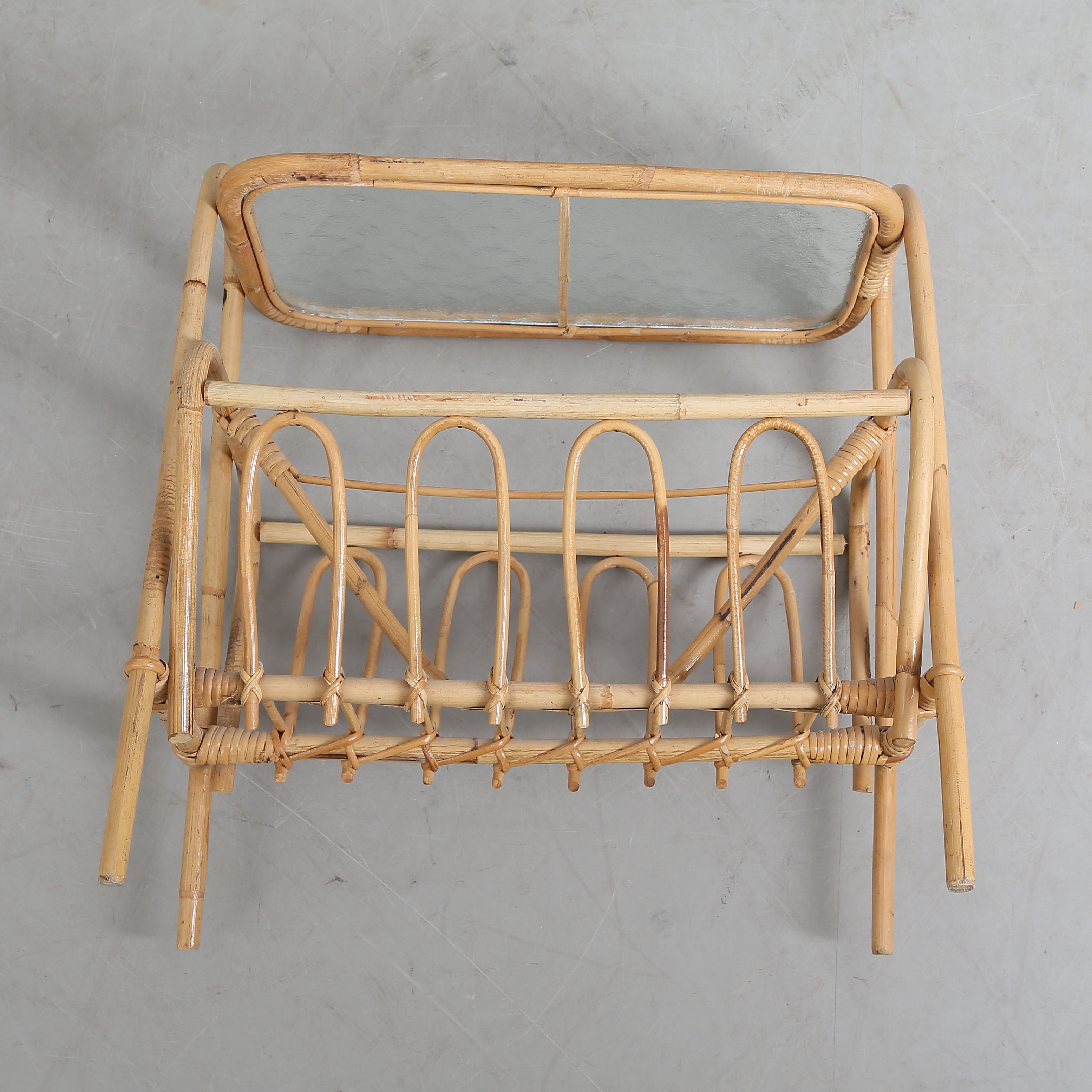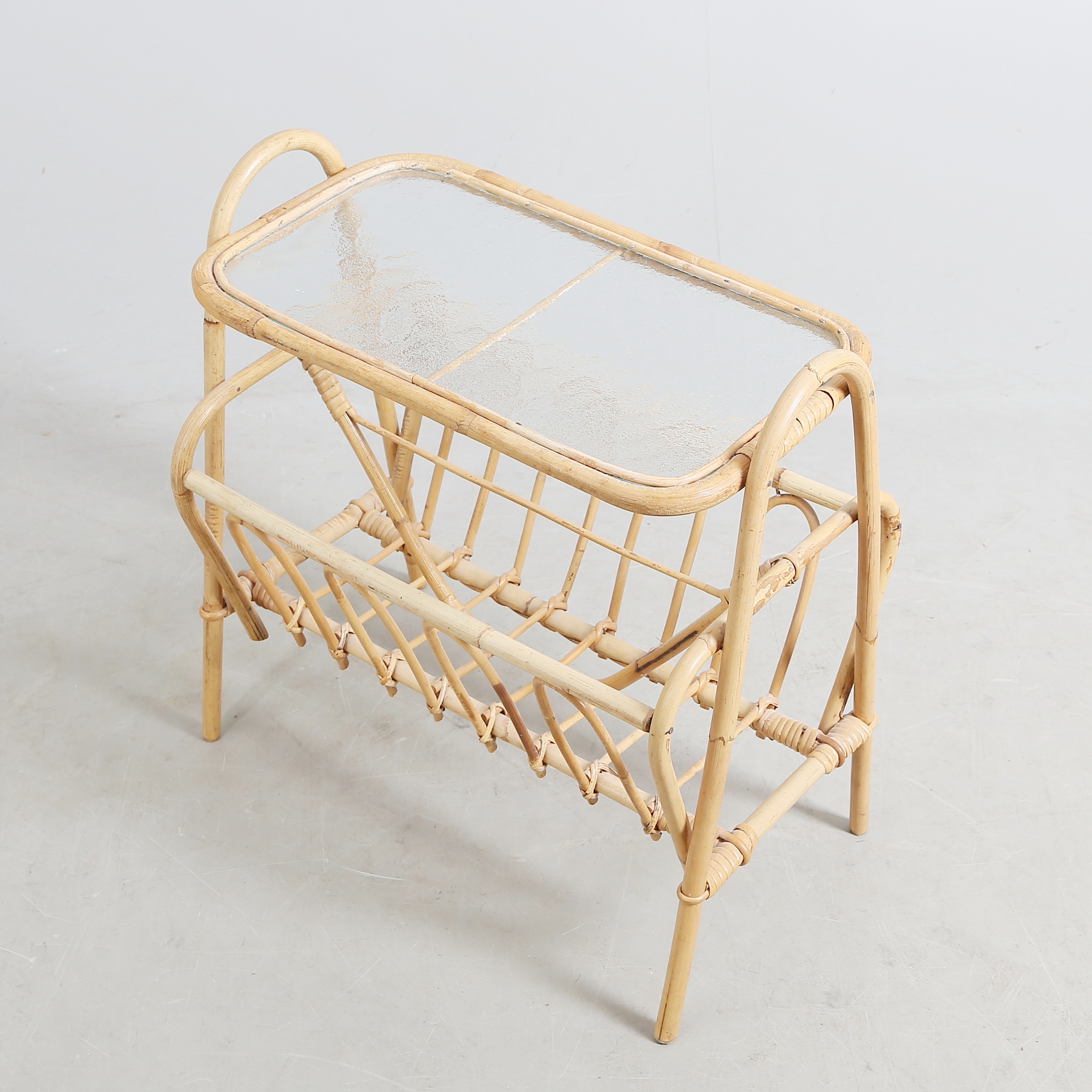 1212100. PLADEBORD, glas/rattan, 1900 tallet.