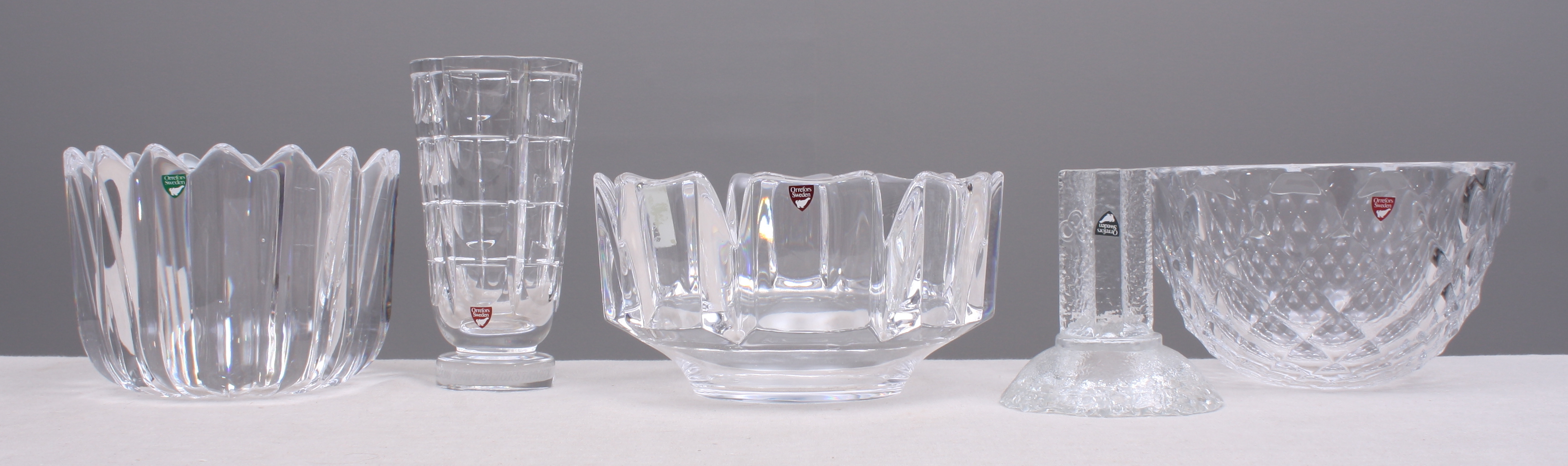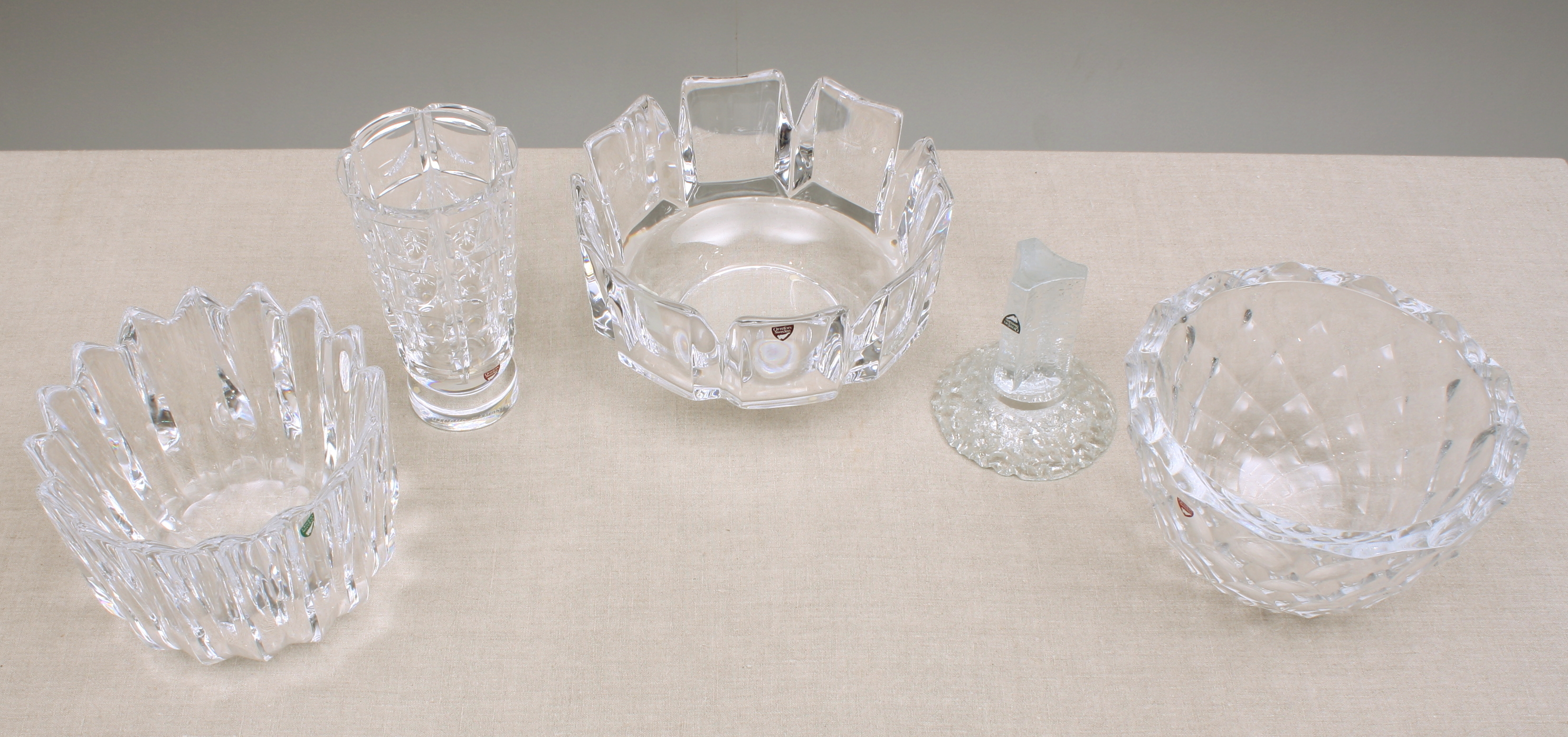 121376. GLAS OBJEKTER, 5 dele, Orrefors krystal.