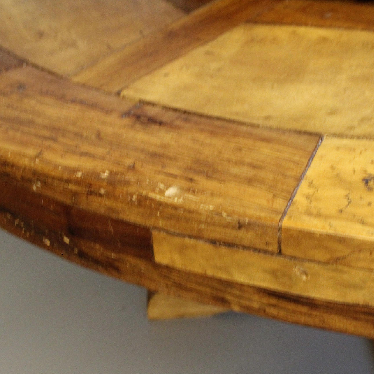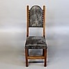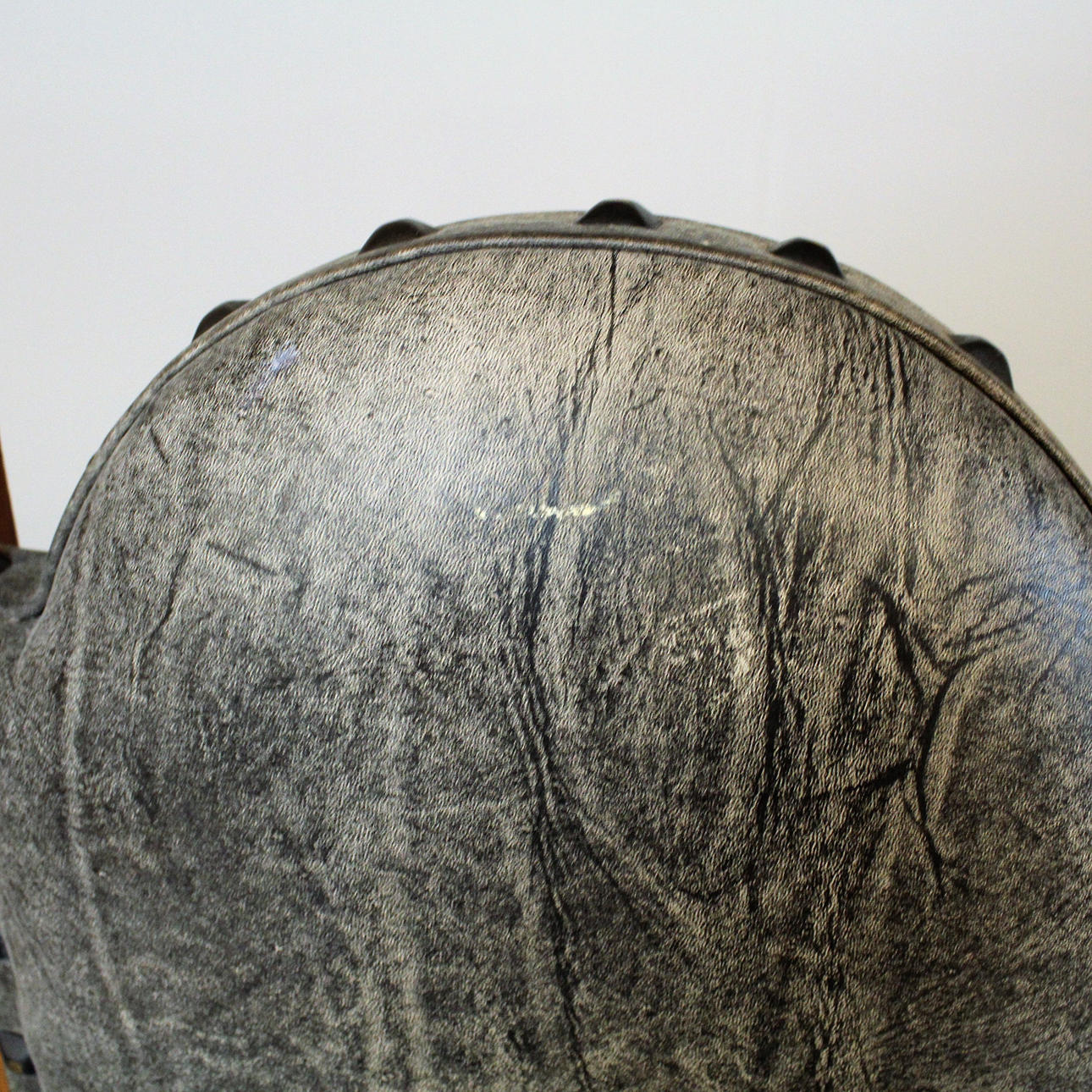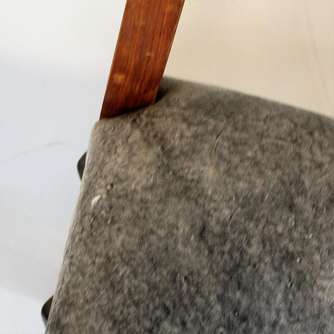 mærke i stoffet af en stol, små mærker på kanten af skiven.