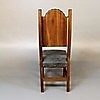 Bord: diameter 180cm, højde 80cm, diameter drejeskive 85cm Stole: Højde 110cm, sædehøjde 46cm, bredde 38cm.