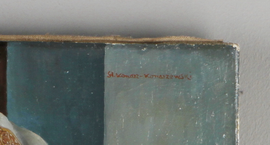 12179. STANISLAW KONARZ-KONARZEWSKI. Olie på lærred, to mænd læser en bog, signeret.