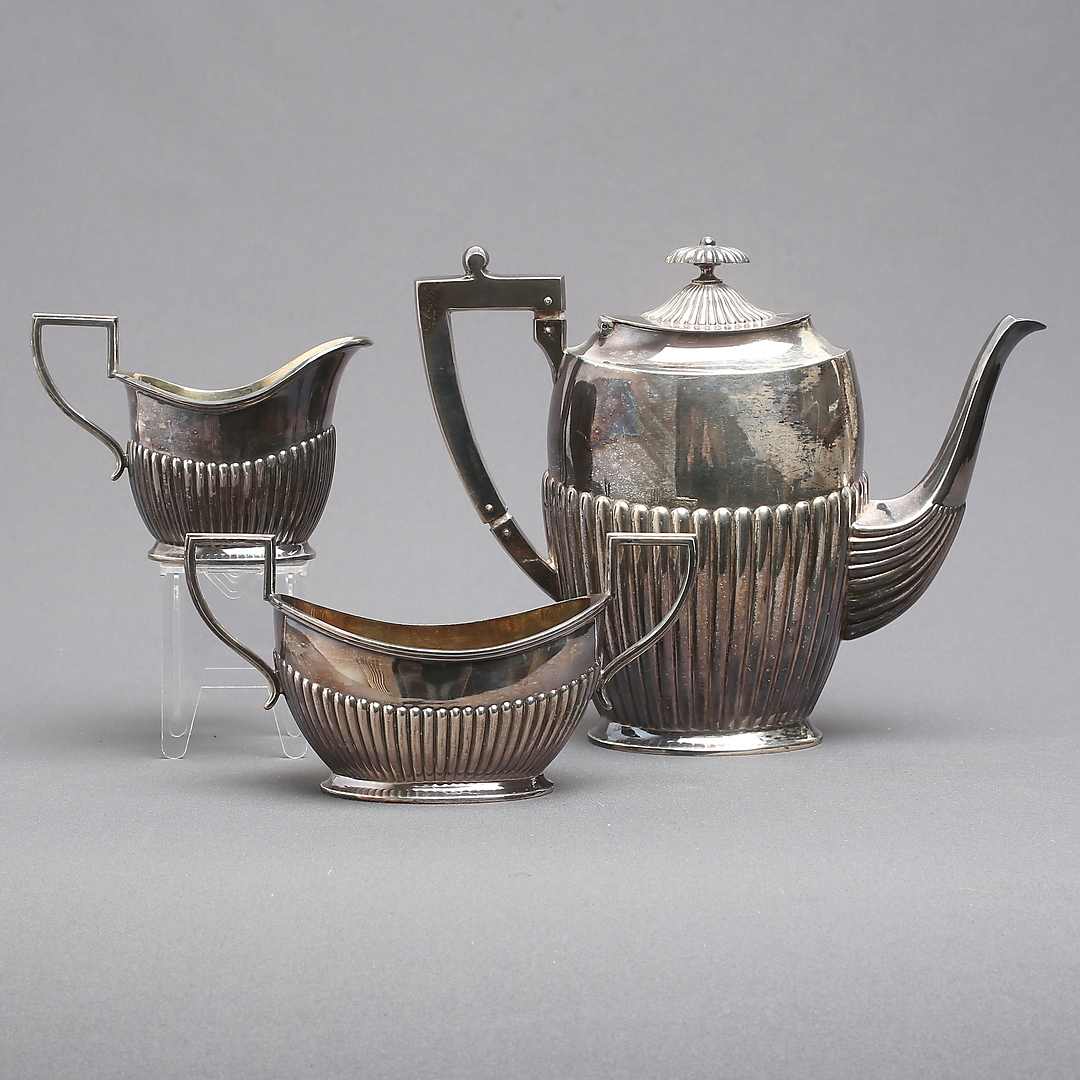 1218344. KAFFESET, 3 dele, sølv, svenske importstempler.
