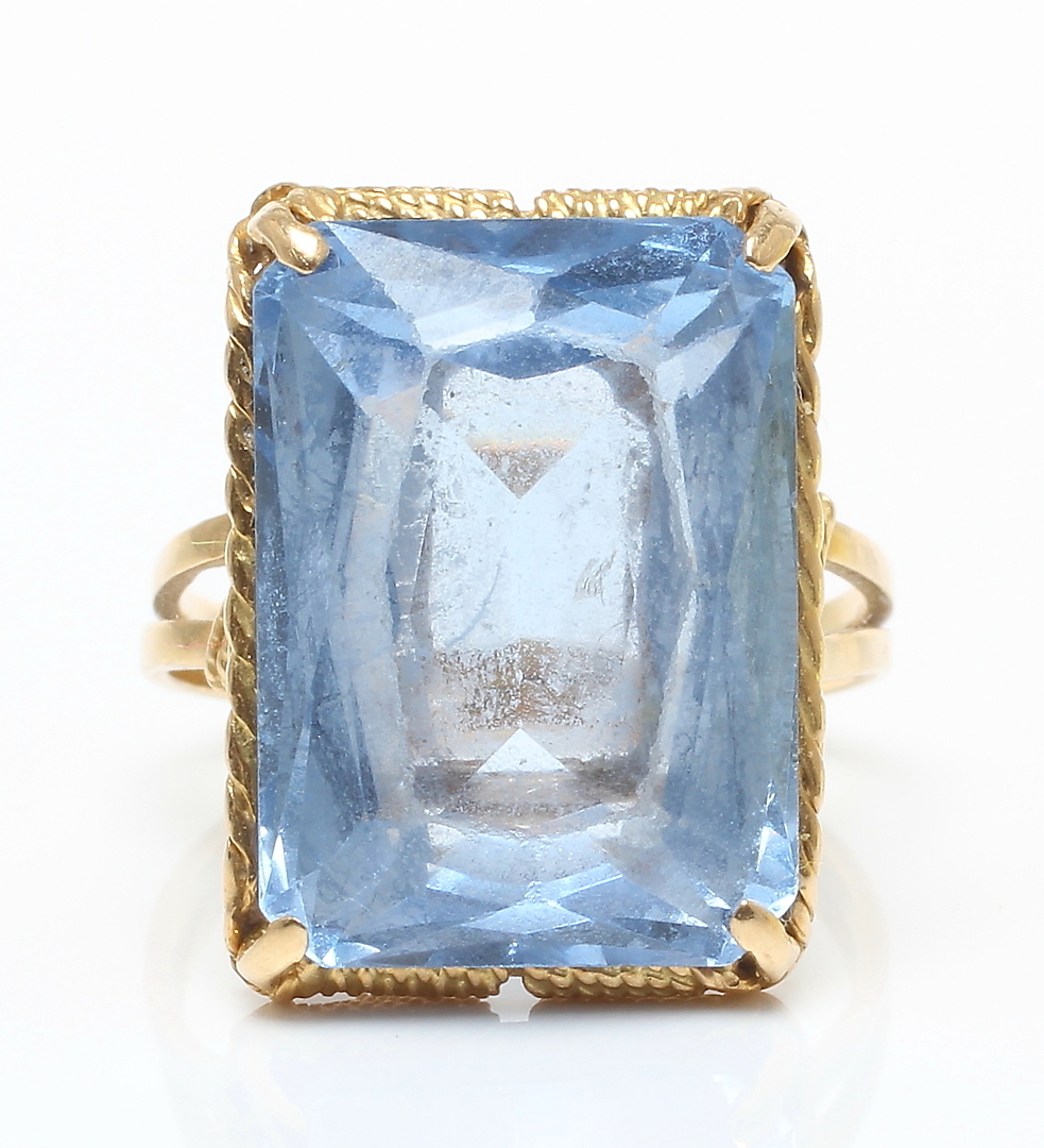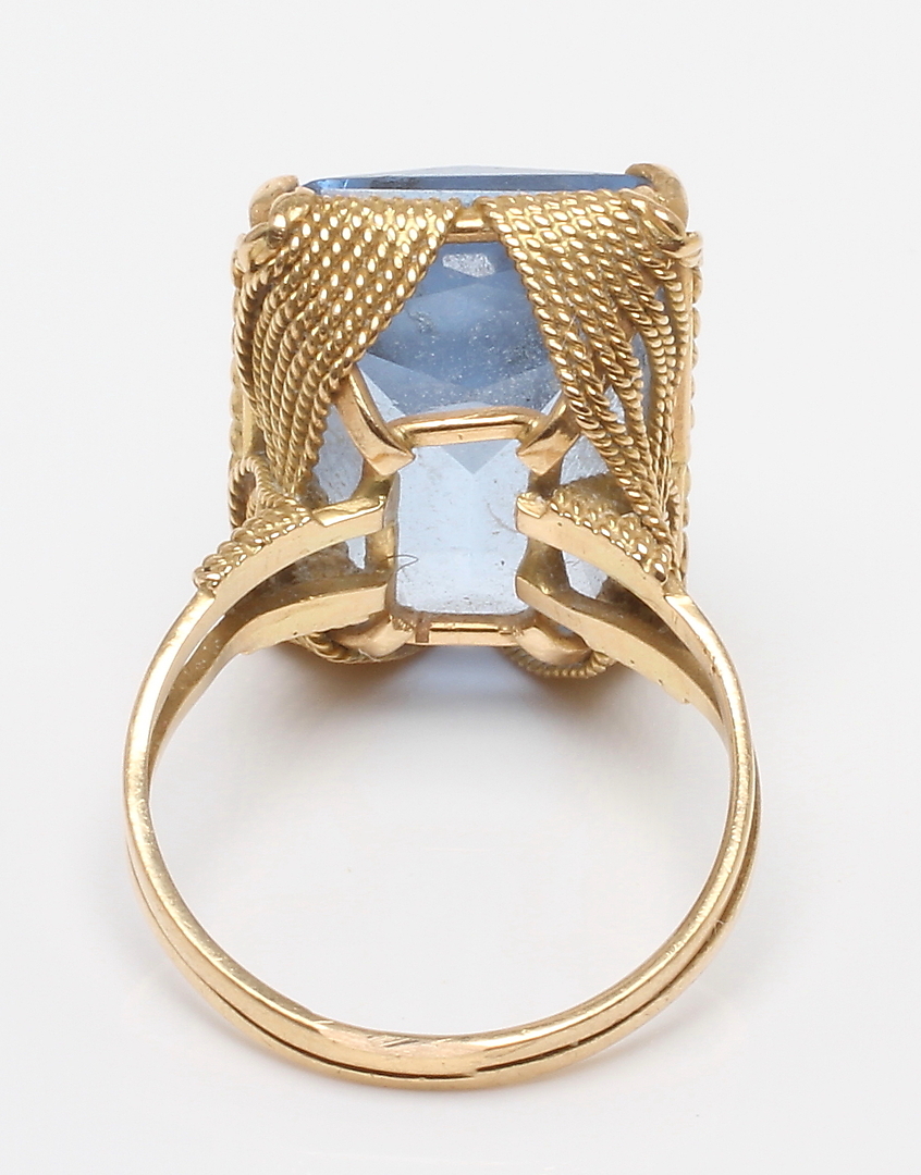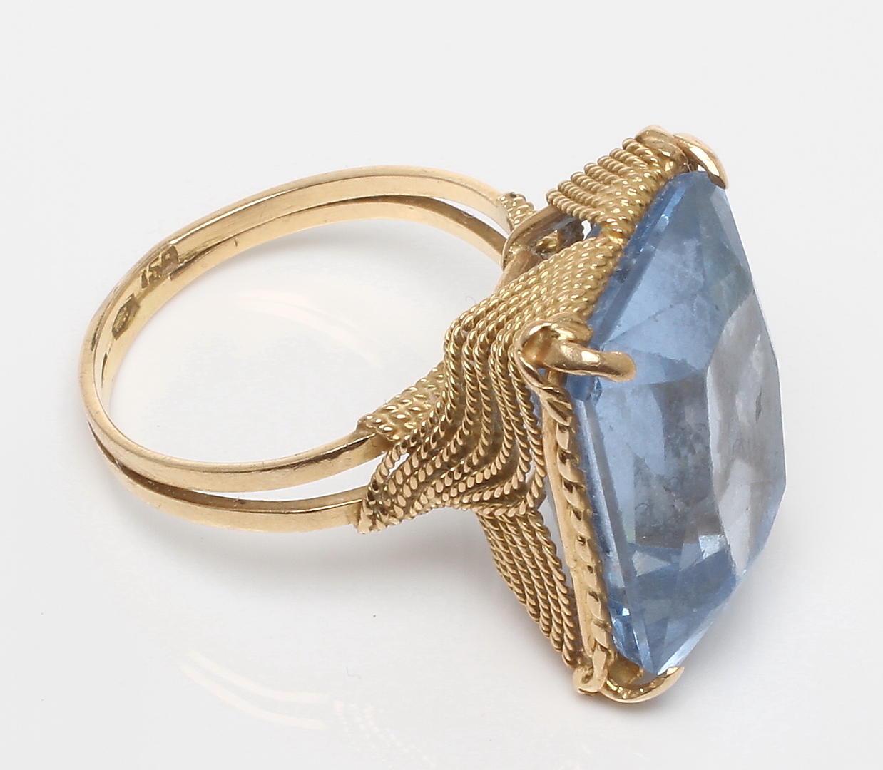 121894. RING 18k guld med blå sten. Vægt 9,3 gram.