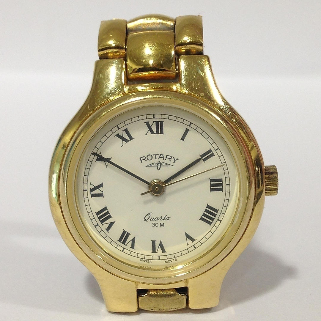 • Mærke: Rotary • Køn: Damer • Materiale: Metal • Farve: Guld • Remlængde: 17,5 cm • Skivefarve: Hvid med romertal • Urværk: Quartz • Serienummer: e3512e/3787 • Cirka: 2000-tallet • Papirarbejde: Nej Totalt vægt: 38,9 gram.
