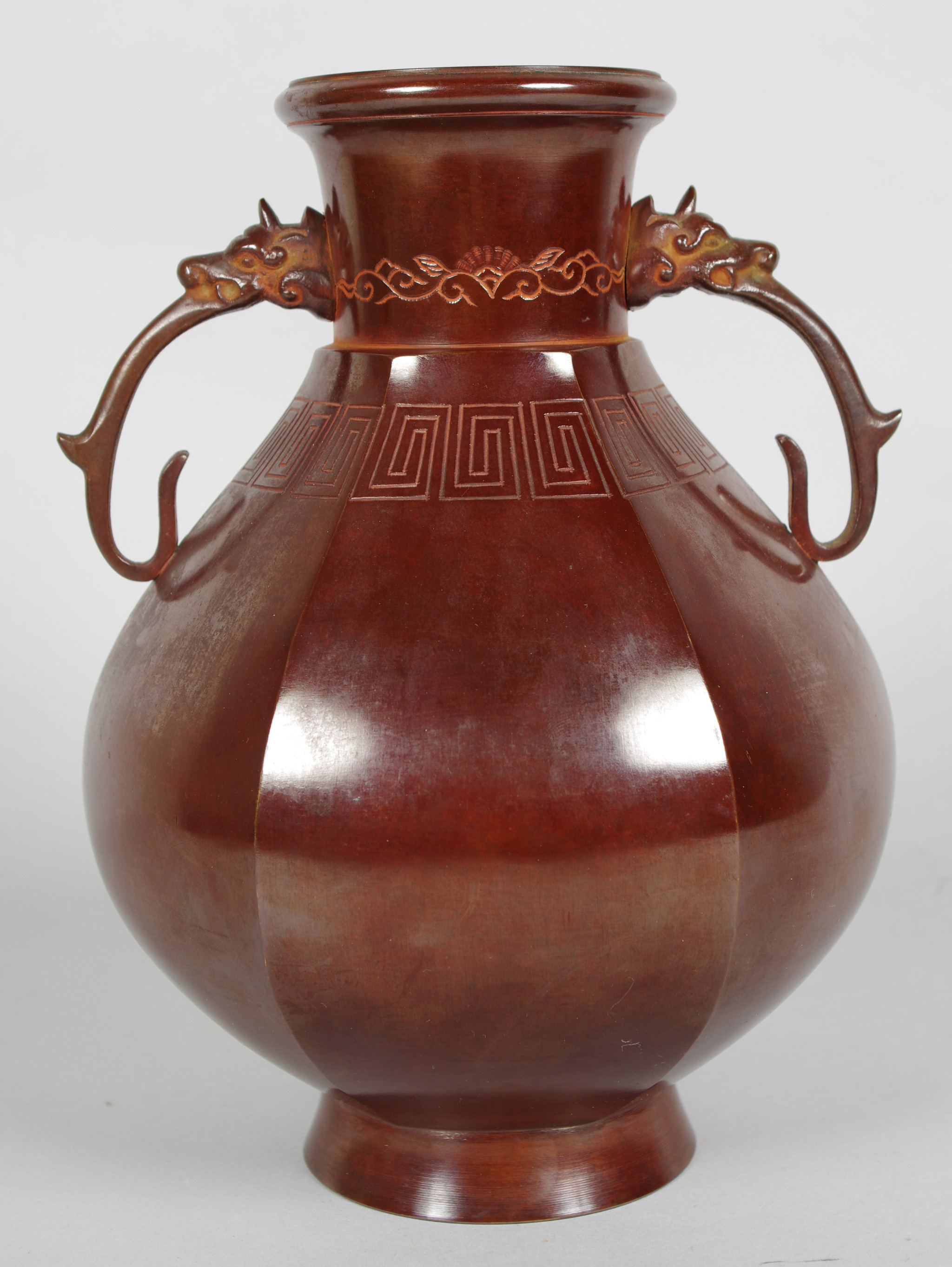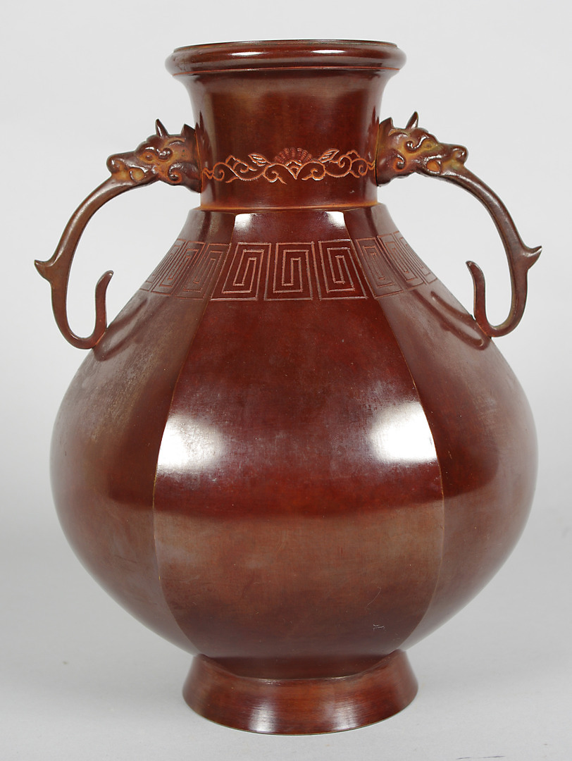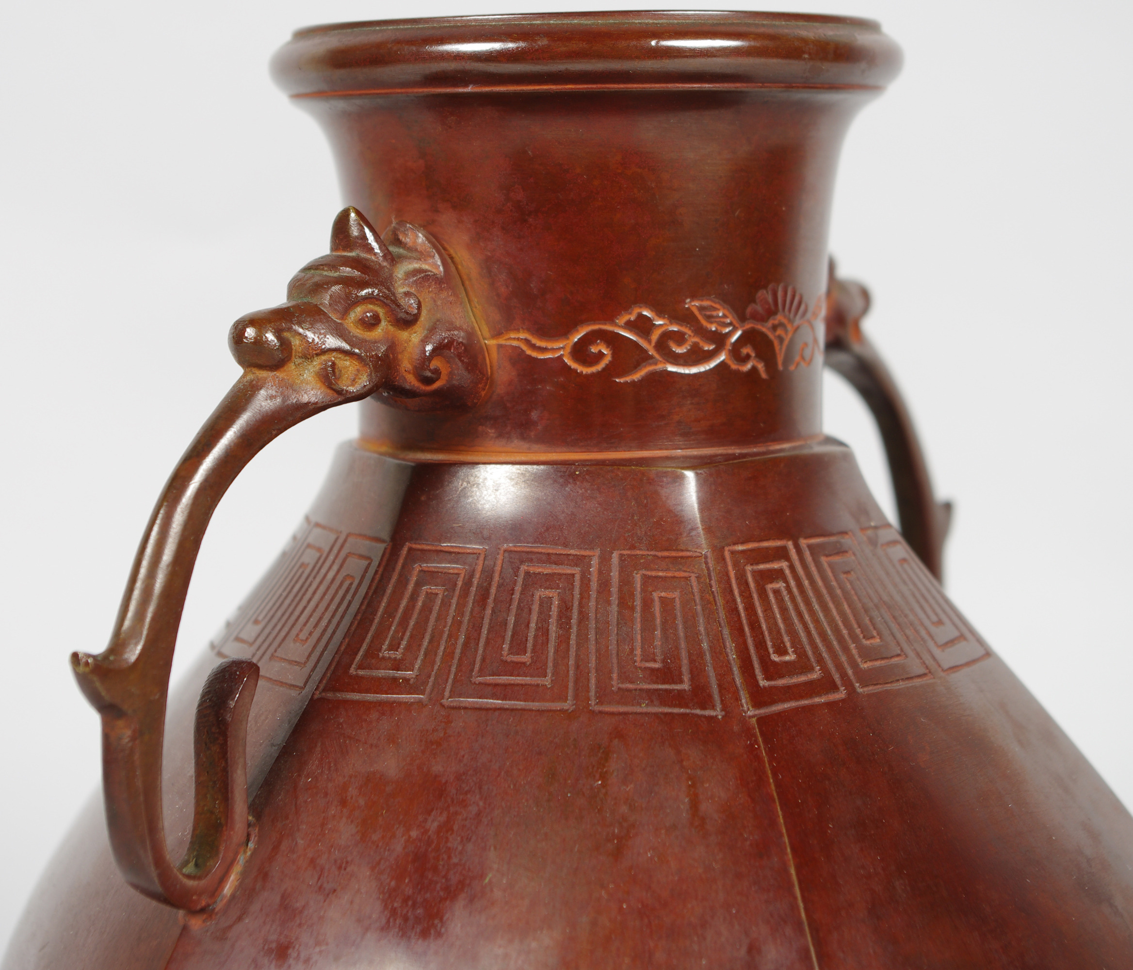 122462. VASE MED HÅNDTAG, patineret bronze, Japan.
