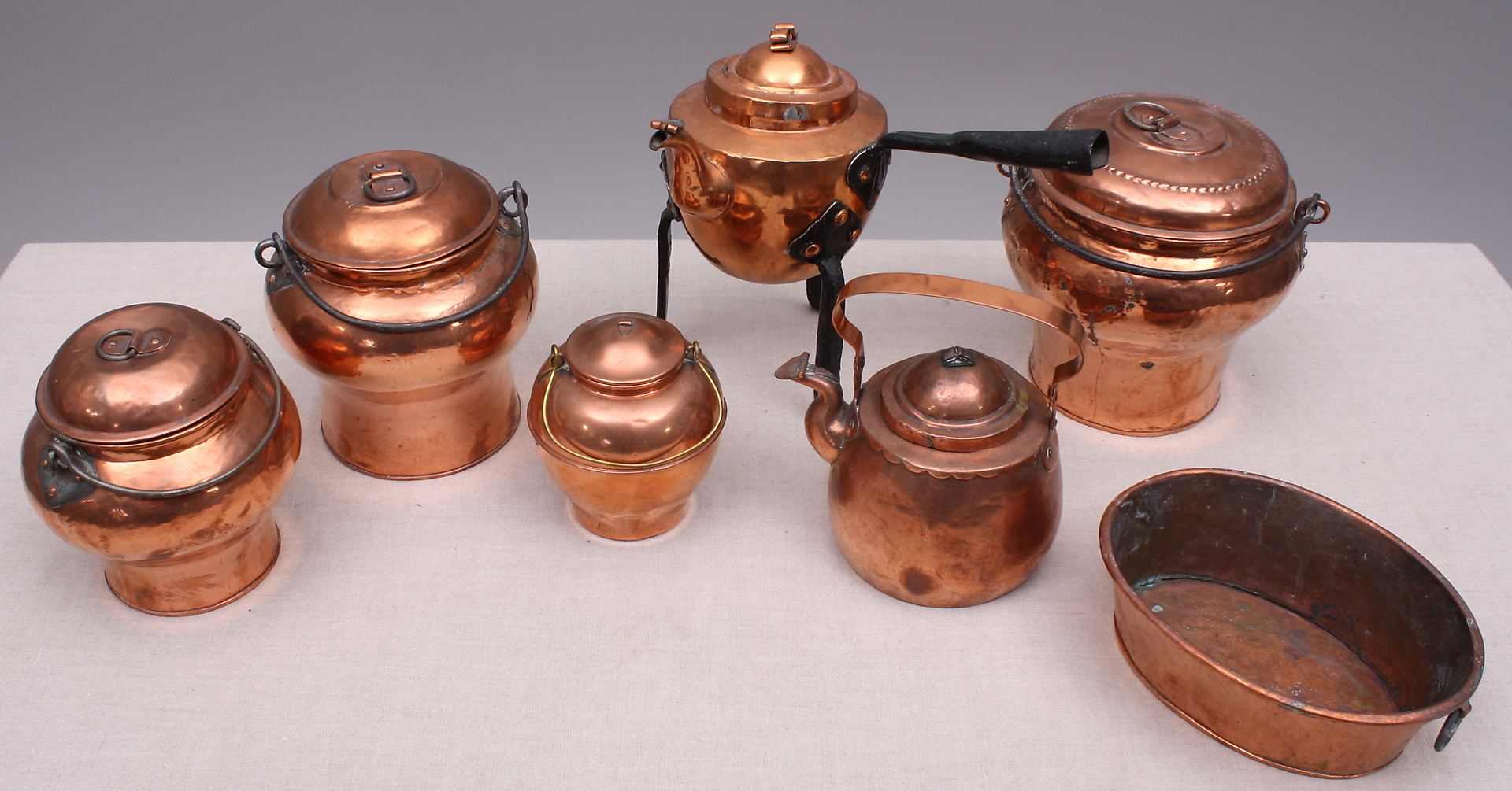 122534. KOBBERVARER, 7 stk, Kaffekander + Lågforme + bageform.