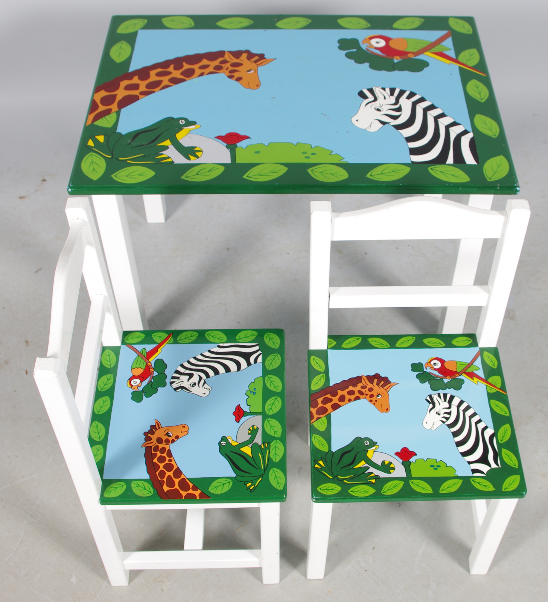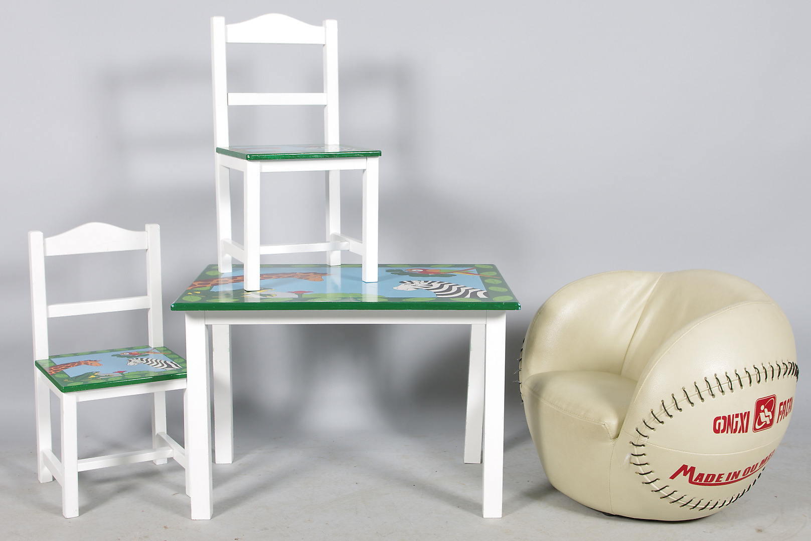 122928. BØRNEMØBLER, bord, 2 stole og lænestol.