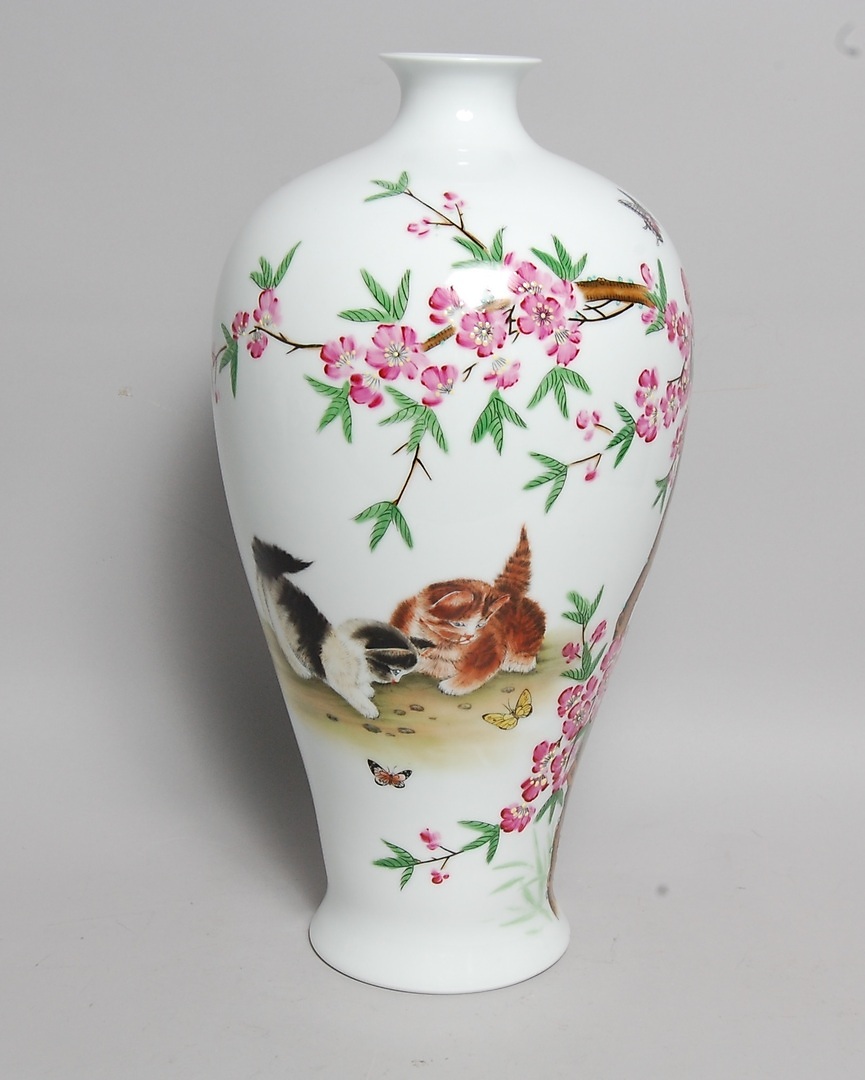 123791. URNA, porcelæn, dekoreret med katte, Kina.