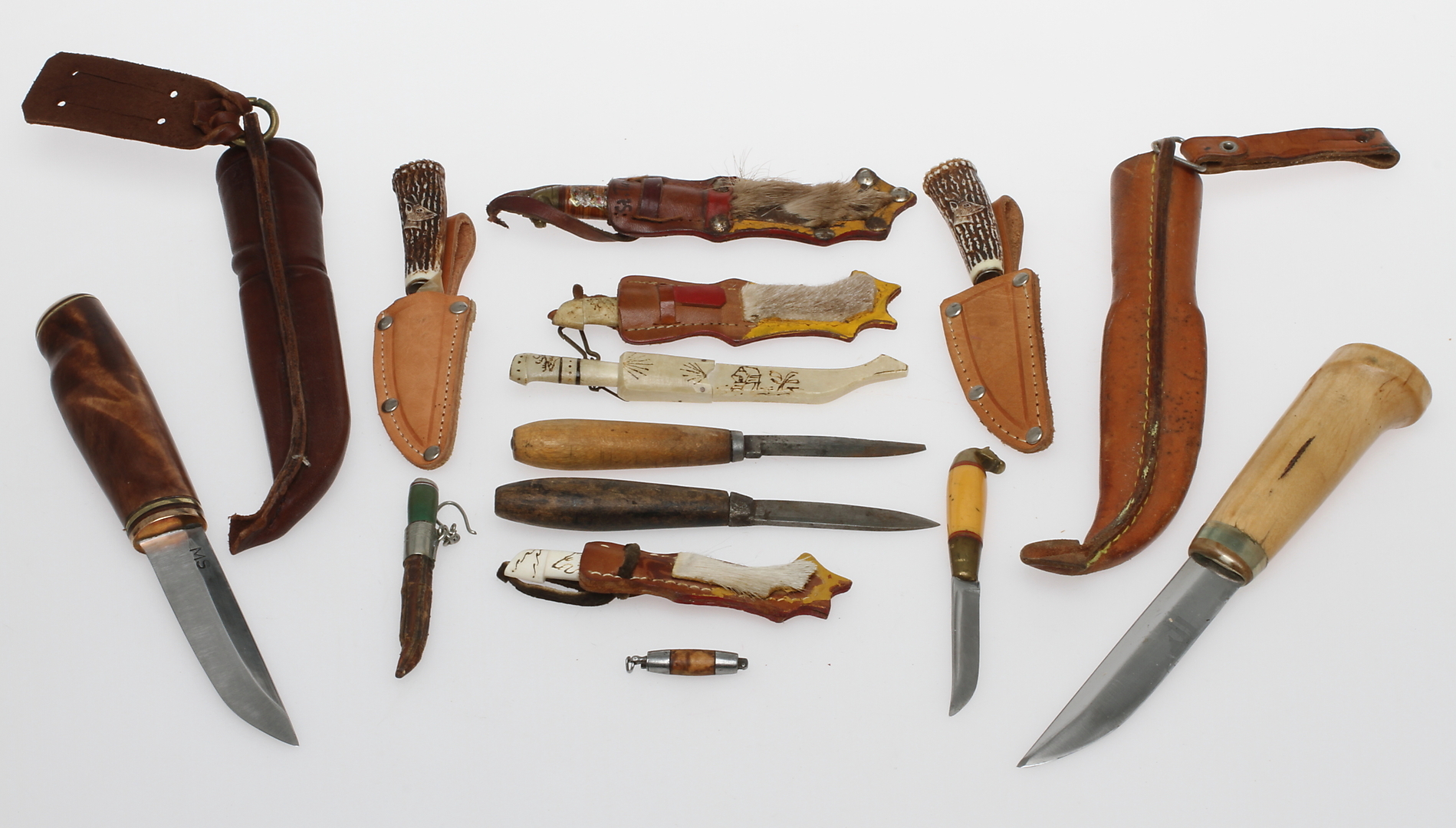 124280. KNIVE 2 stk og MINIATURKNIVE.