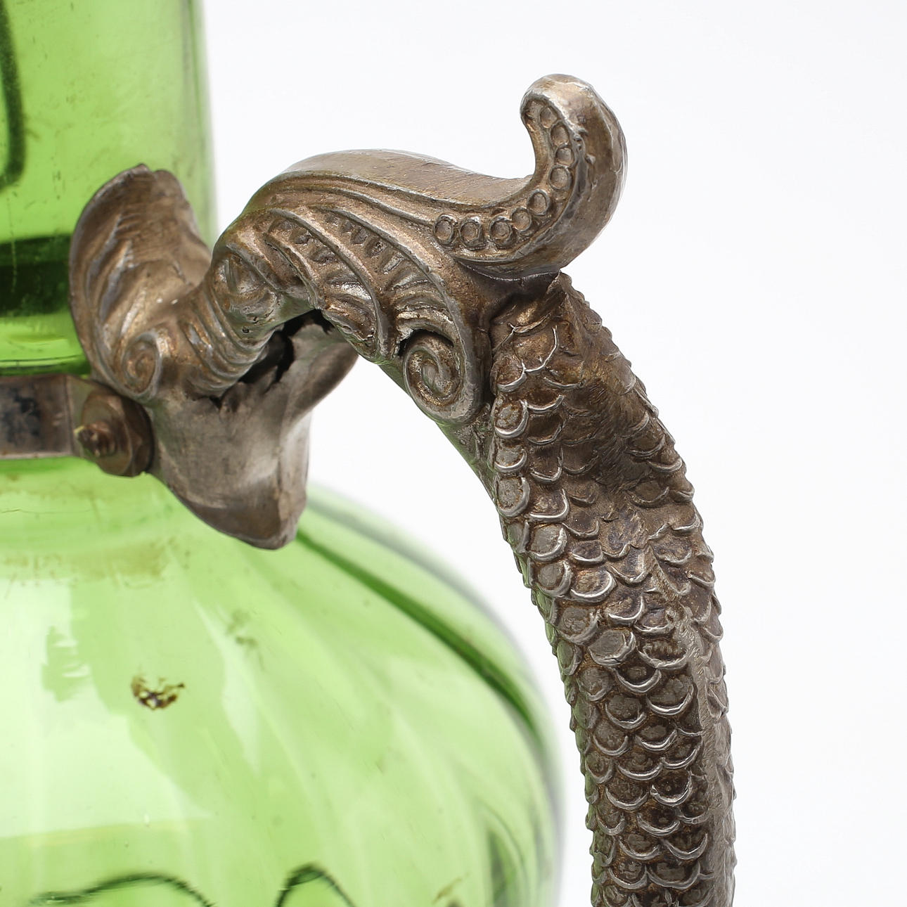 Med håndtag af tin i form af et havmonster. Låg låg.