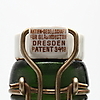 Mærket glasindustri dresden DRGM No 102886. Aktiengesellschaft fur glasindustri. Dresden patent 3418. Ene sælger til Sverige & Finland Wilhelm Meinhadt, Stockholm Højde 27 cm Diameter 11 cm.