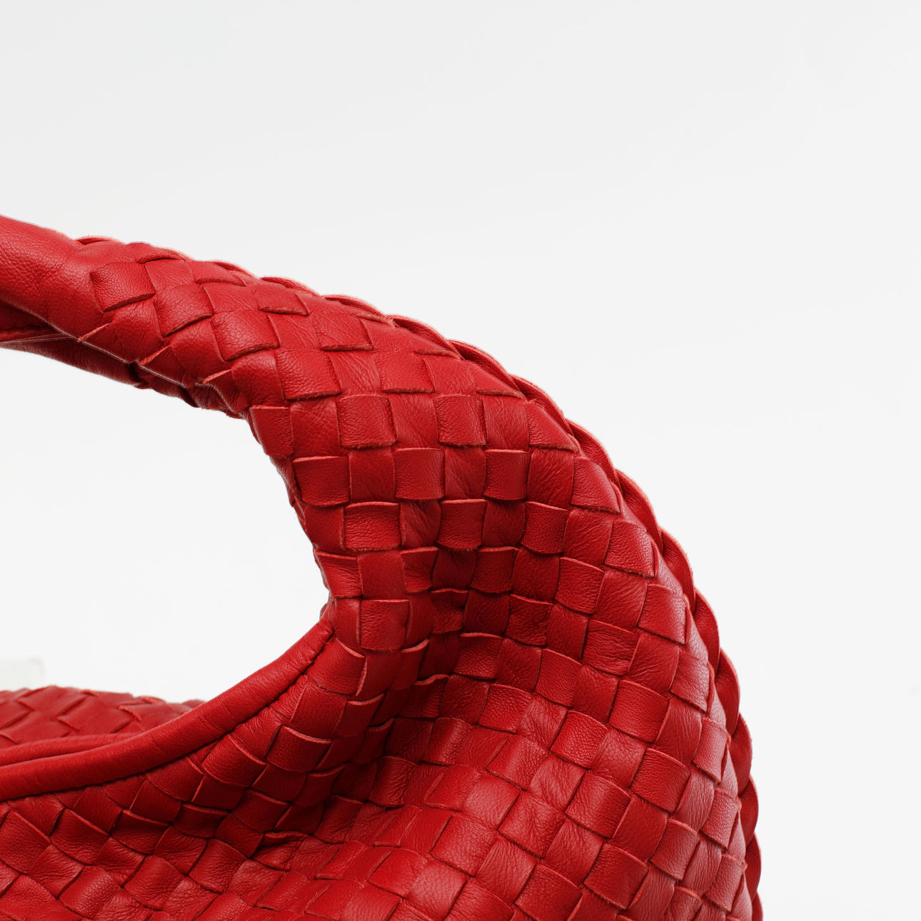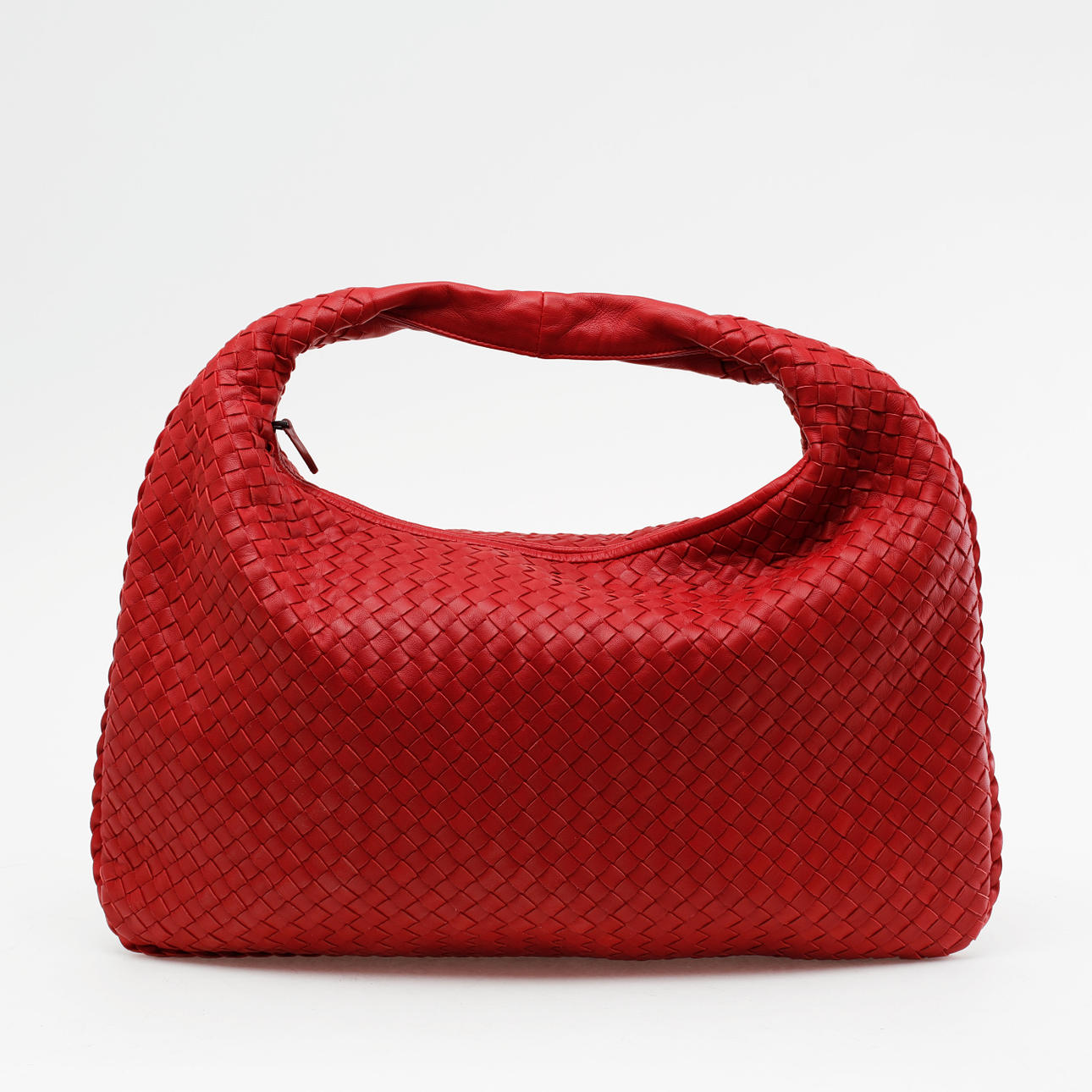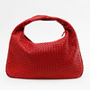 Rød Hobo taske i flettet læder, såkaldt intrecciato. Lynlås. Foret med ruskind, 2 indvendige rum, det ene med lynlås. Mærket "BOTTEGA VENETA MADE IN ITALY". 47 x 30 cm.