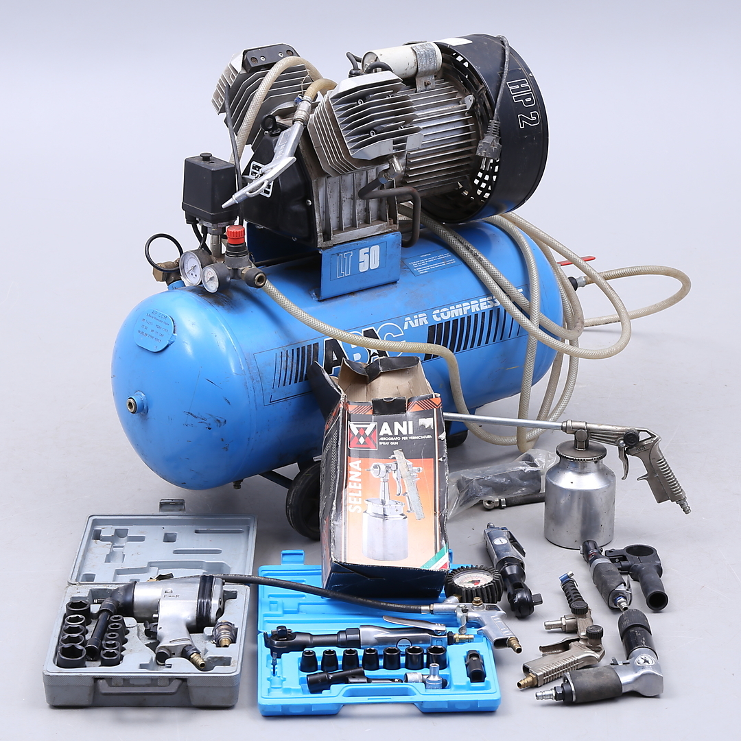 1249870. KOMPRESSOR, ABAC LT 50, HP 2, med tilbehør.