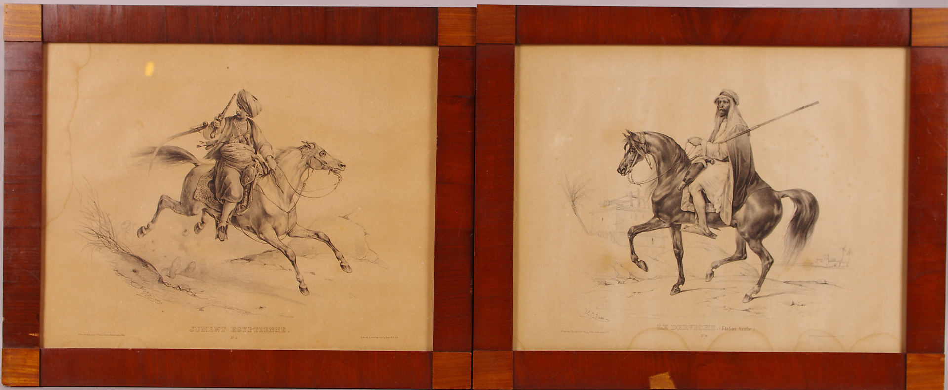 125596. ÆLDRE TRYK, 2 stk, ryttere med heste.