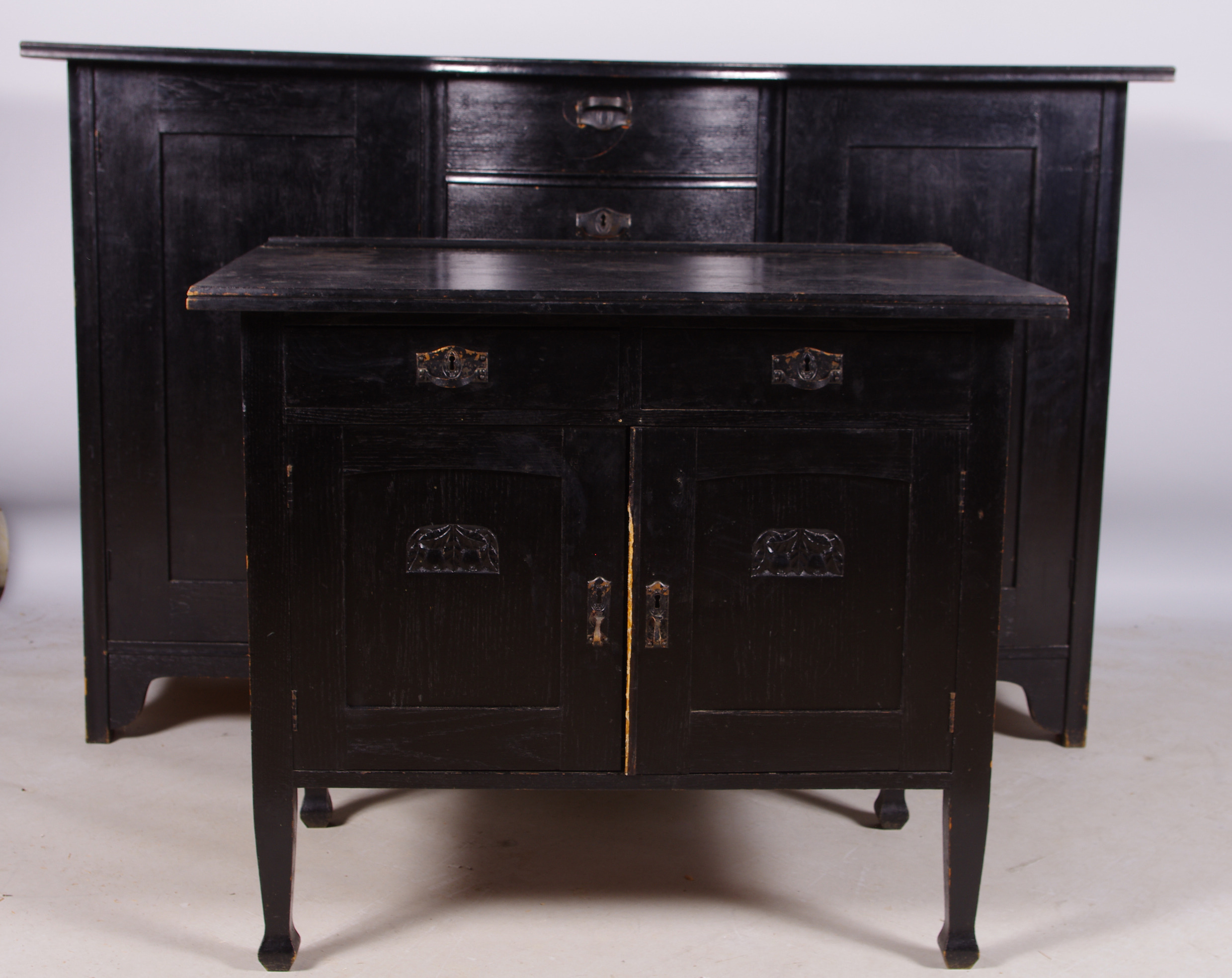 125660. BUFFET OG LAND, sortmalet eg, jugendstil.