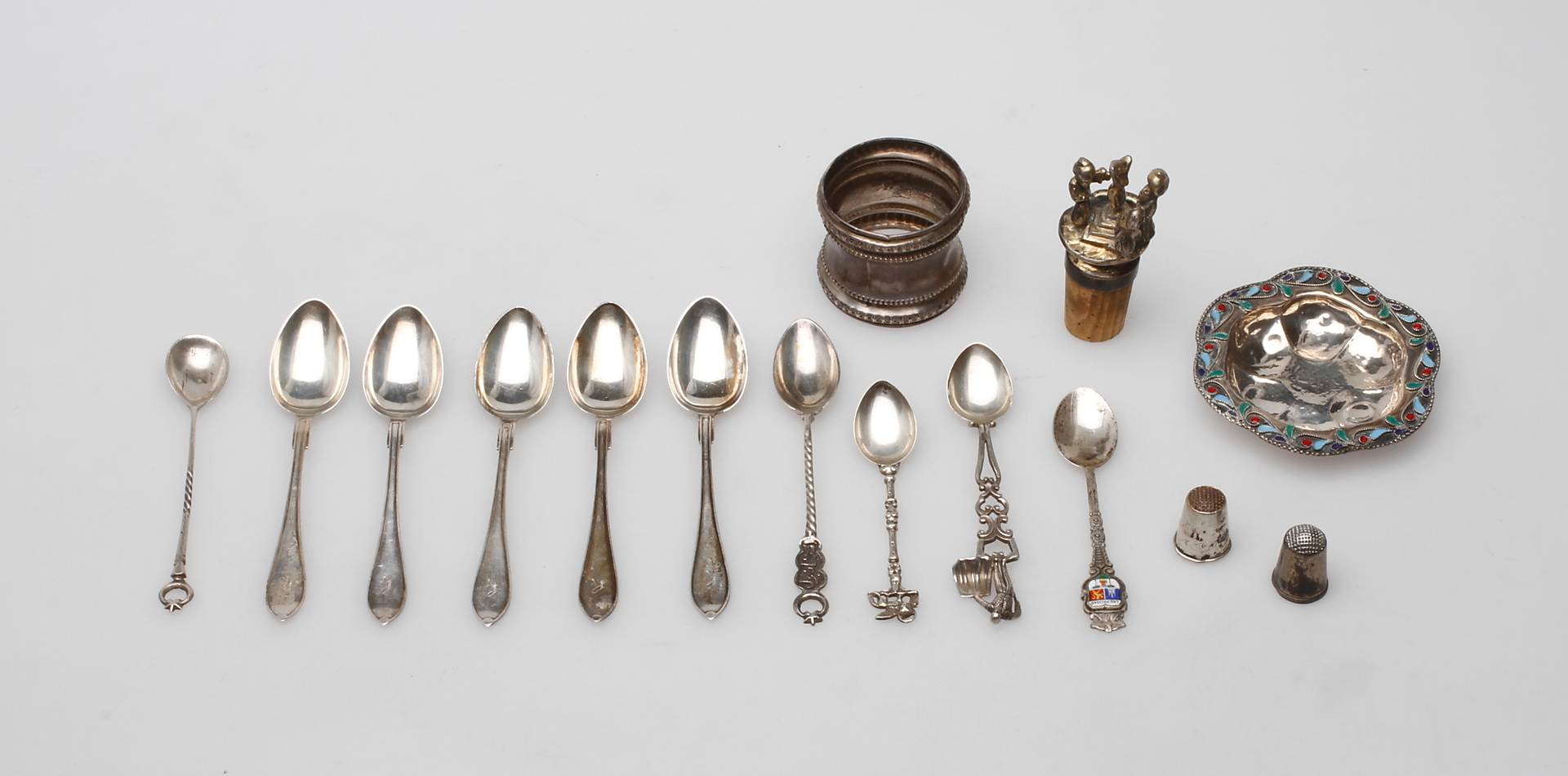 126020. Sæt SØLV, 15 dele, ca 215 gram.
