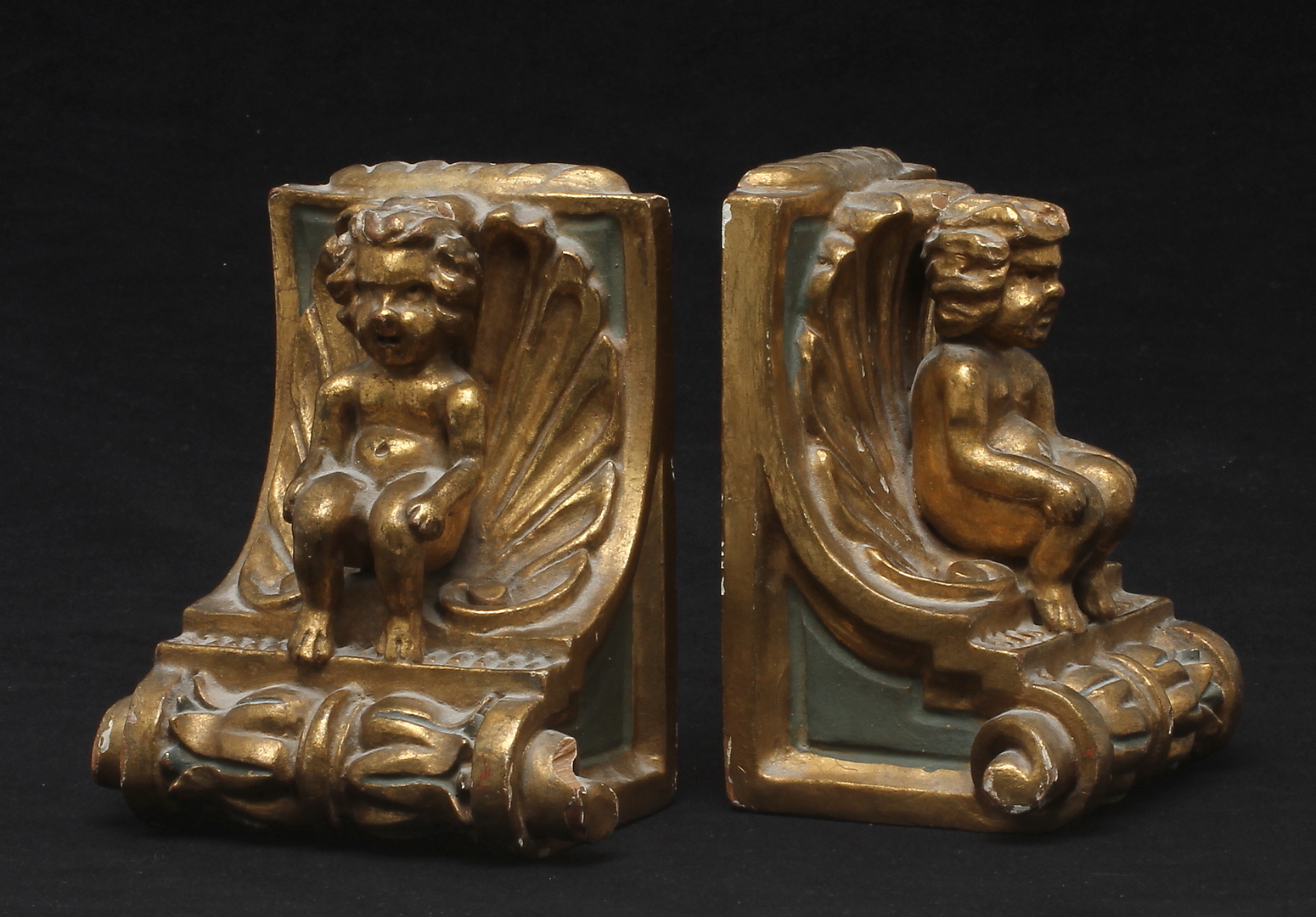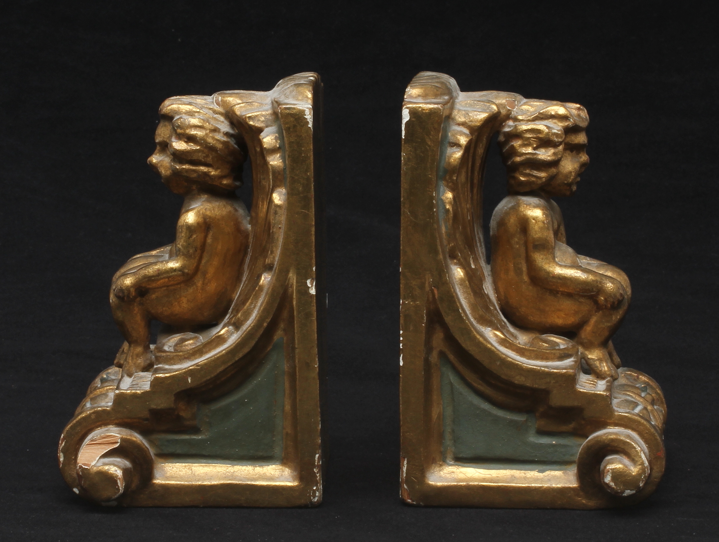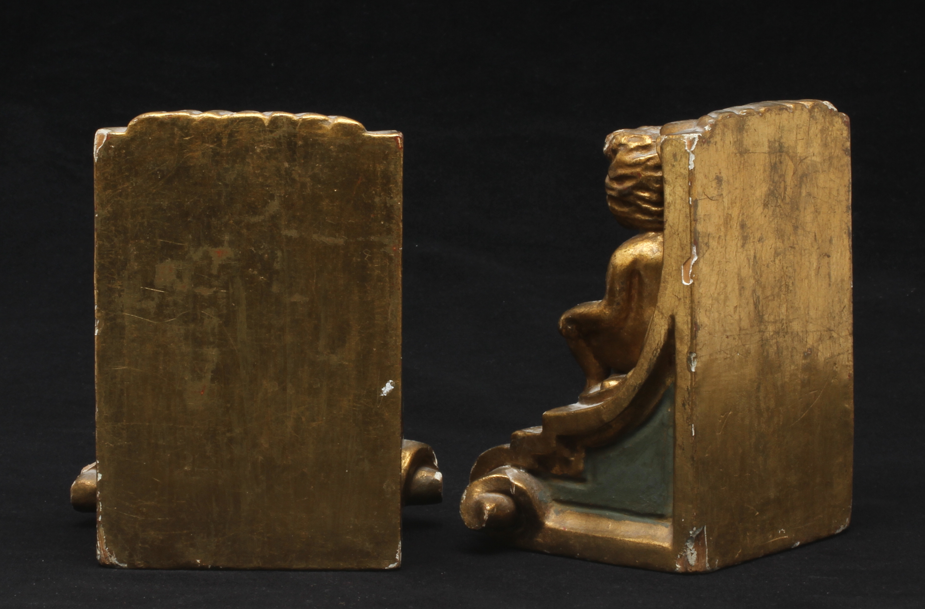 126251. BOGSTØTTE, forgyldt og skåret træ.