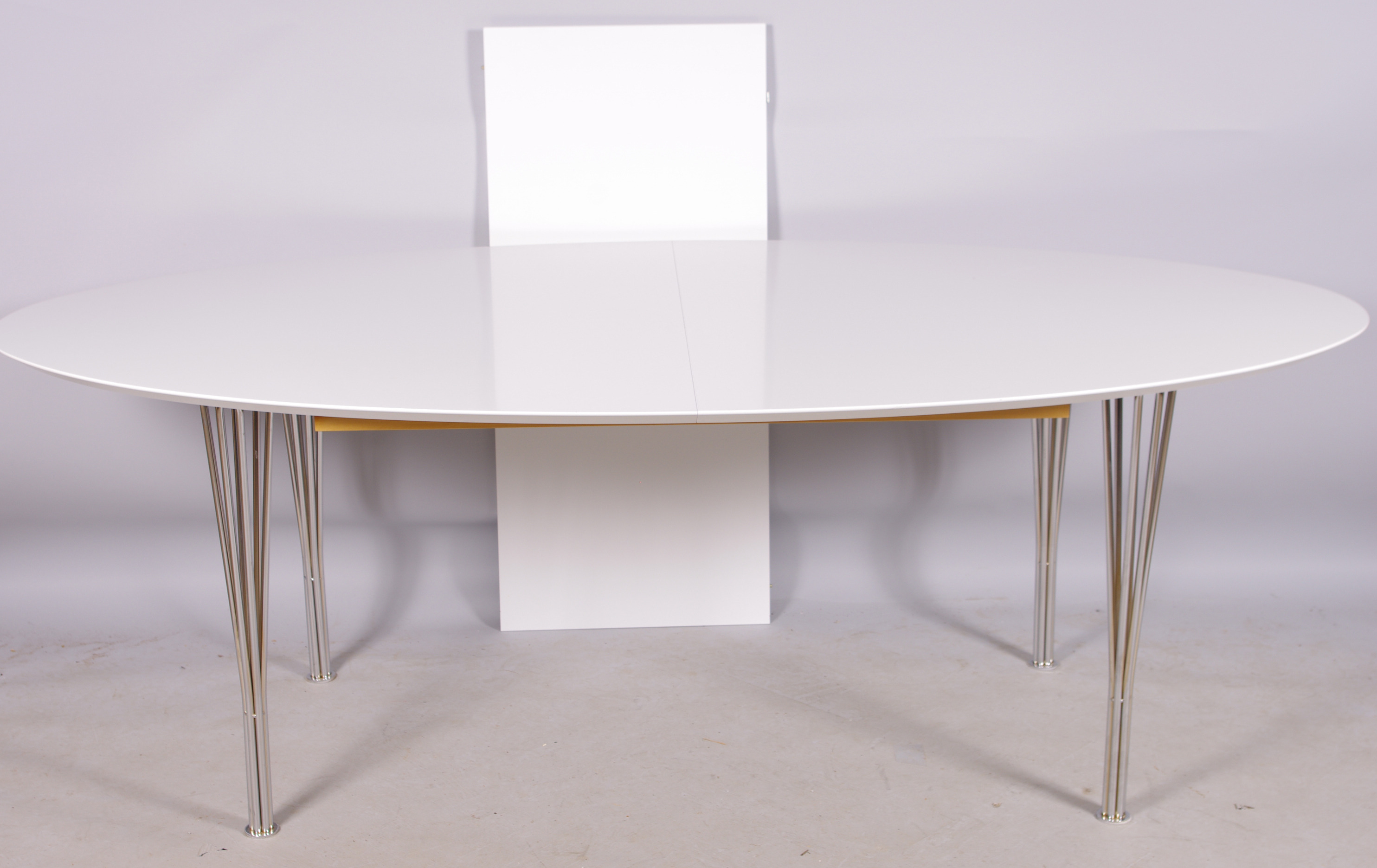126486. SPISEBORD, hvidlakeret med krom, Danmark.