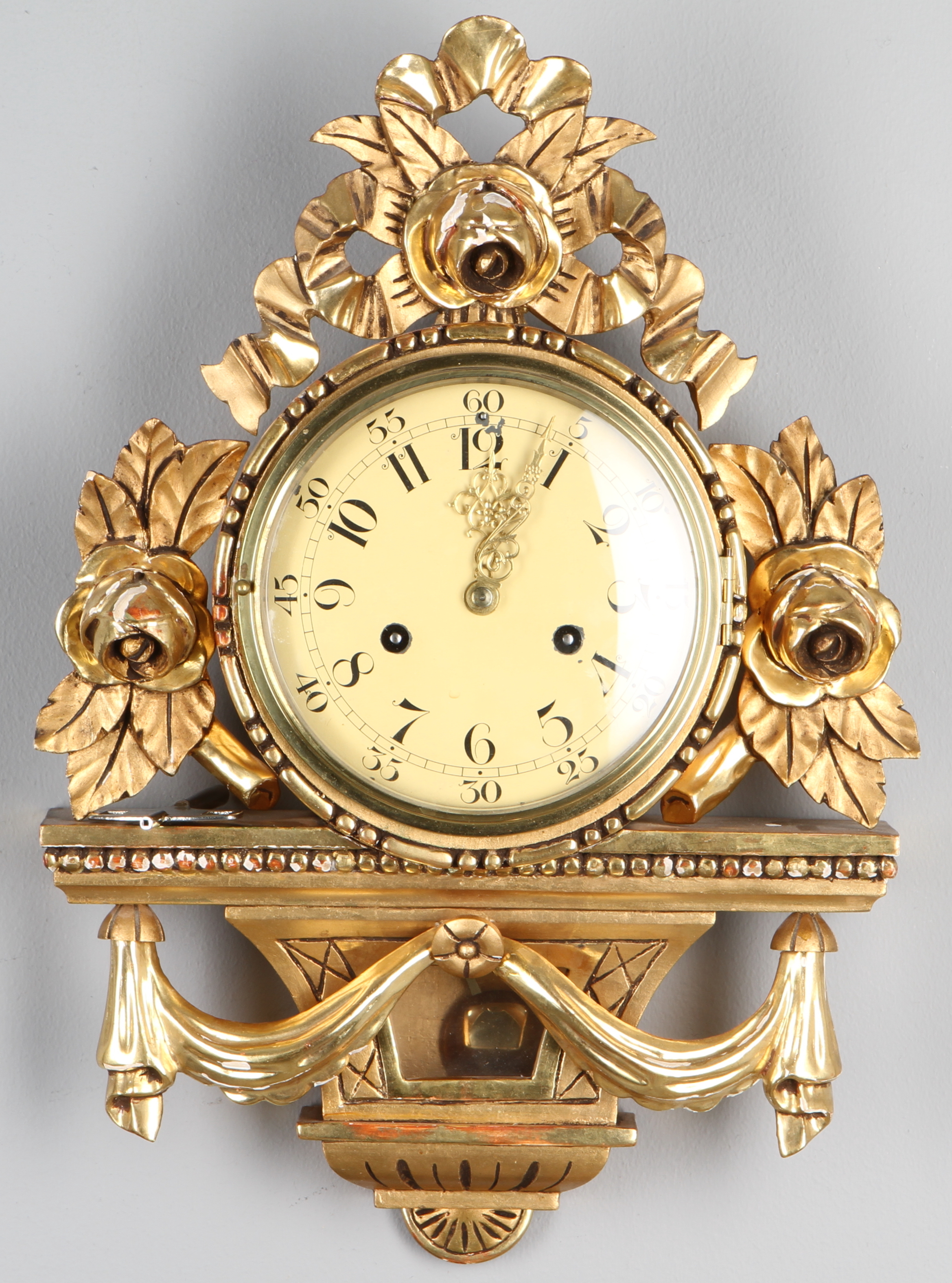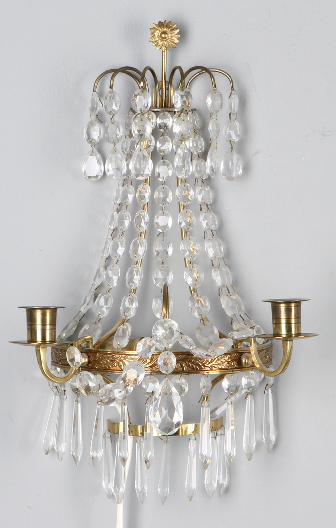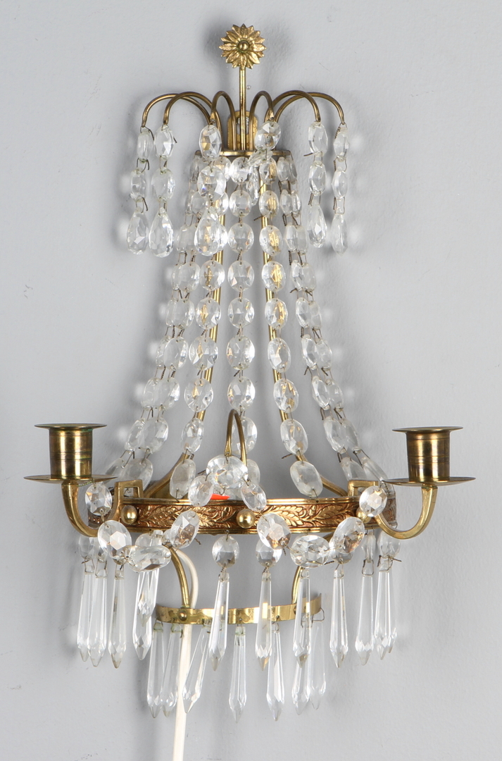 12686. VÆGPENDUL og VÆGLAMPER, gustaviansk stil, 20. århundrede.