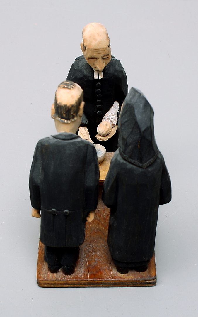 127920. TRÆSKULPTURGRUPPE, 3 figurer.