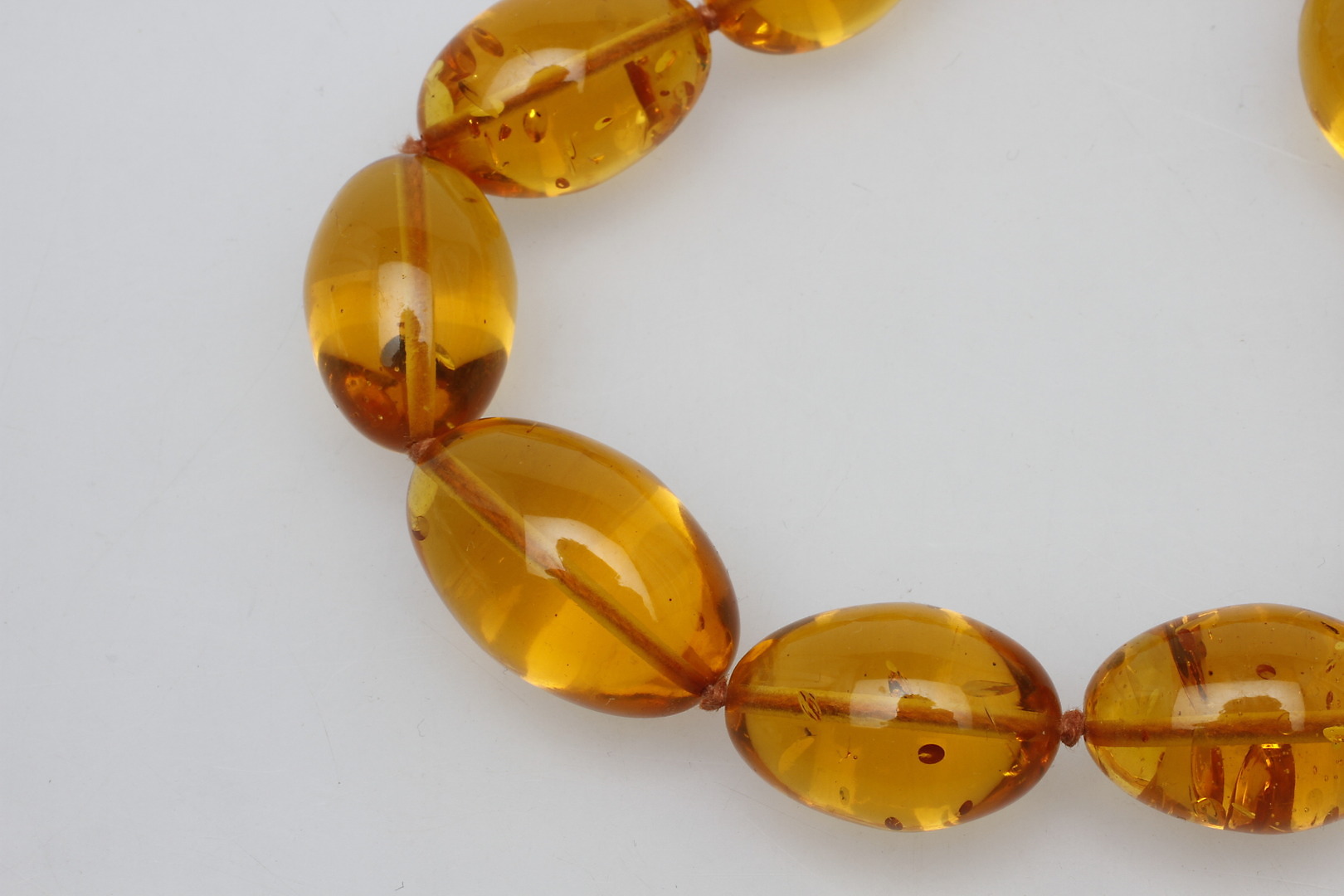 128119. HALSKÆDE, lys rav, vægt ca. 69 gram.
