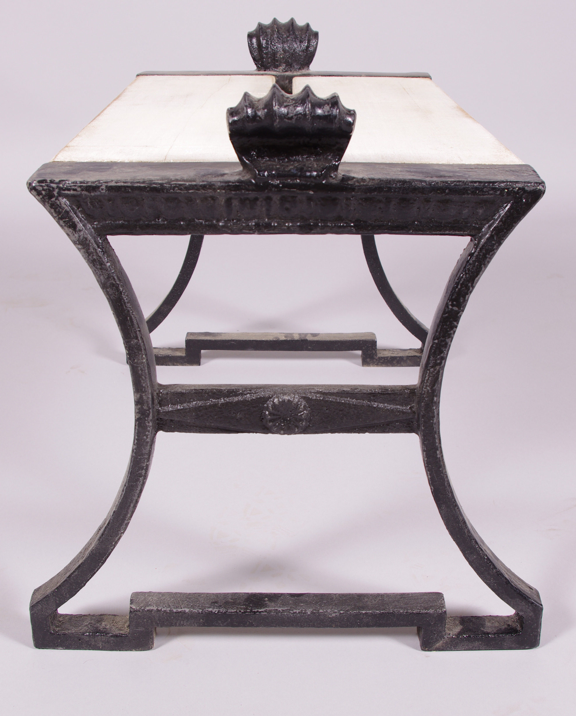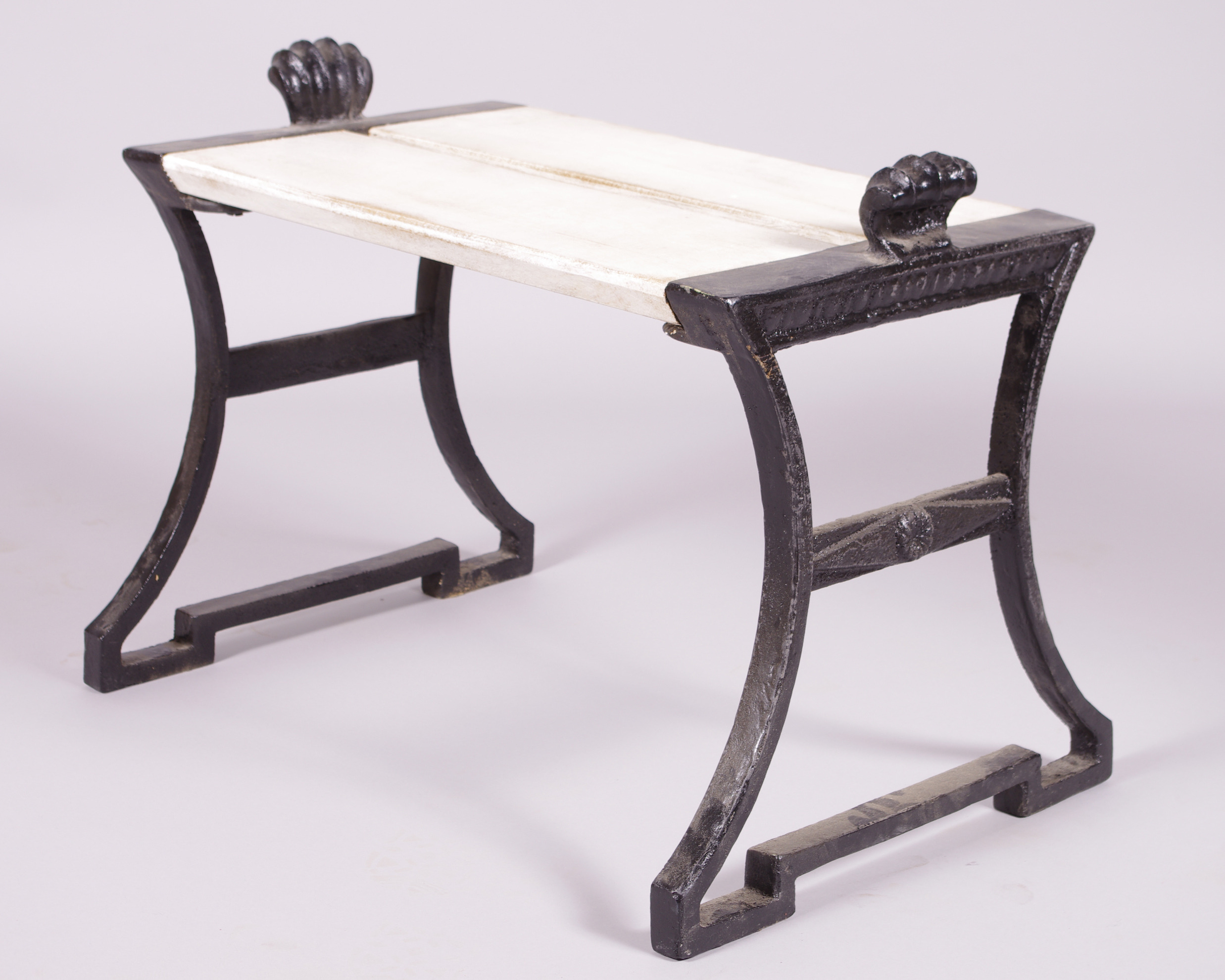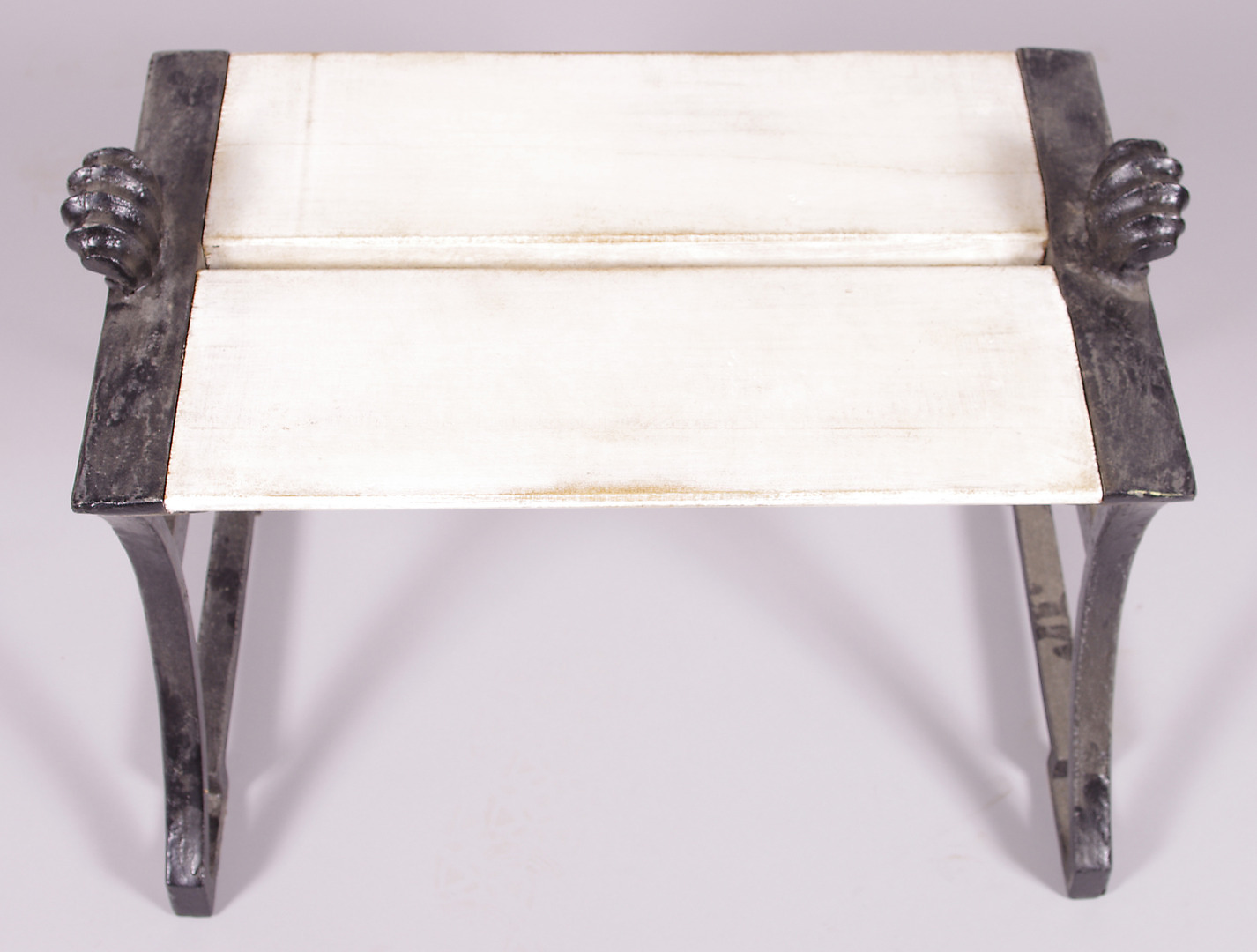 128143. TABURETT, hvidmalet træ med ender af støbejern.