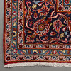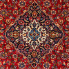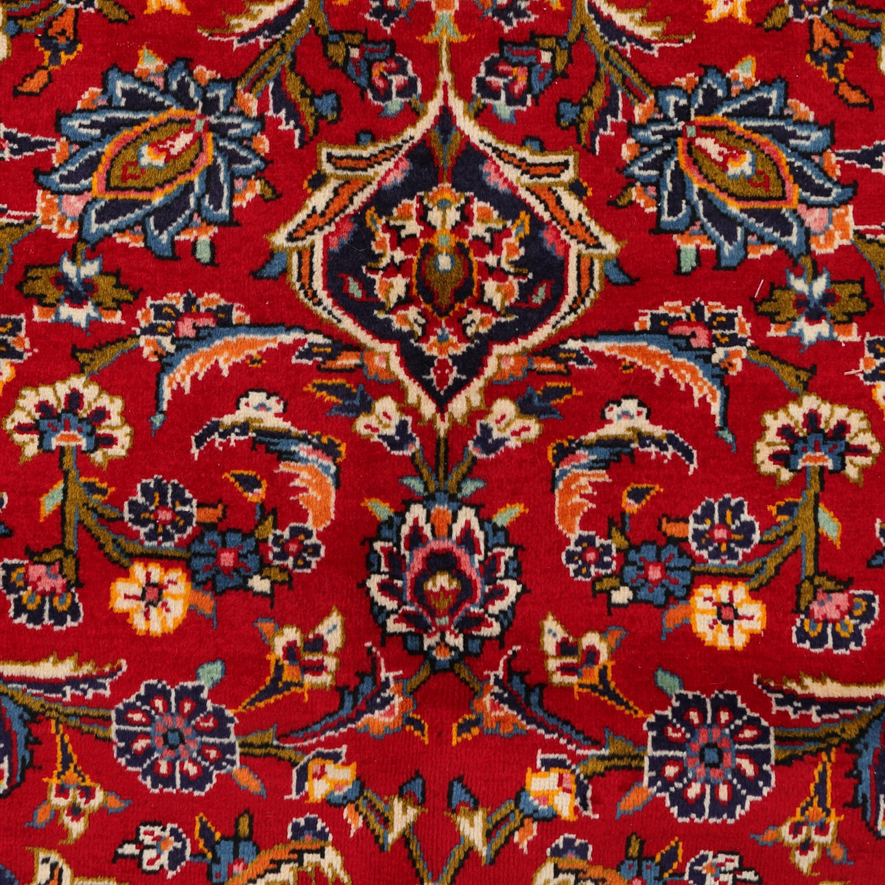 Håndknyttet persisk tæppe i uld på bomuldskæde, Keshan. Linseformet medaljon på overmønstret rød bund.