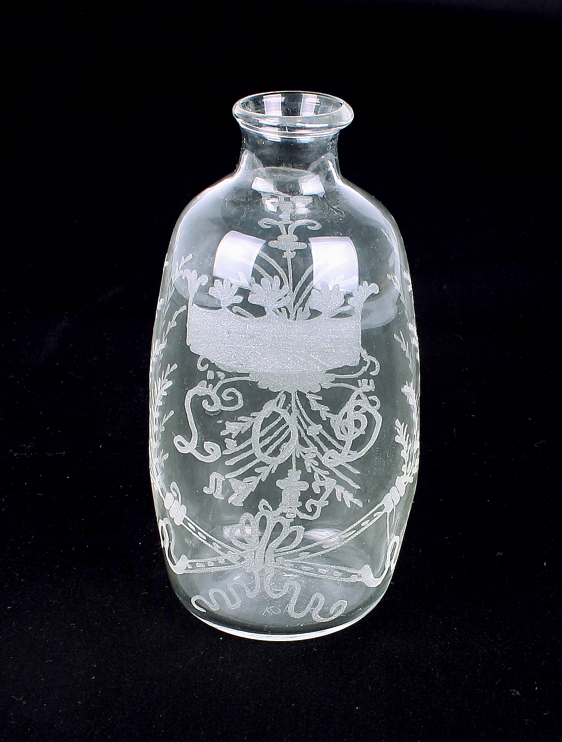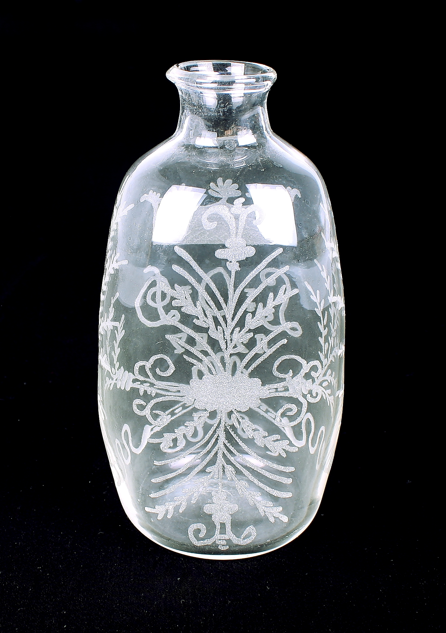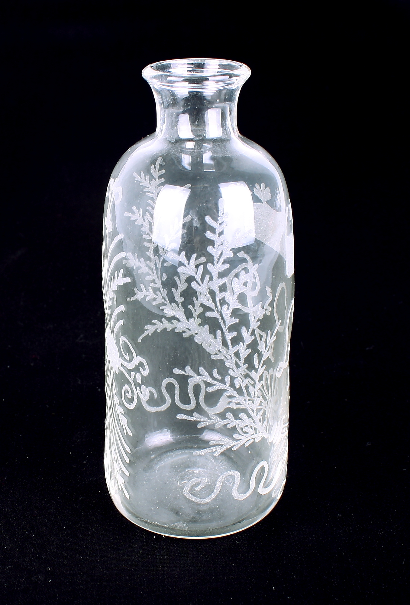128704. FLASKE, glas, ætset dekor, 20. århundrede.