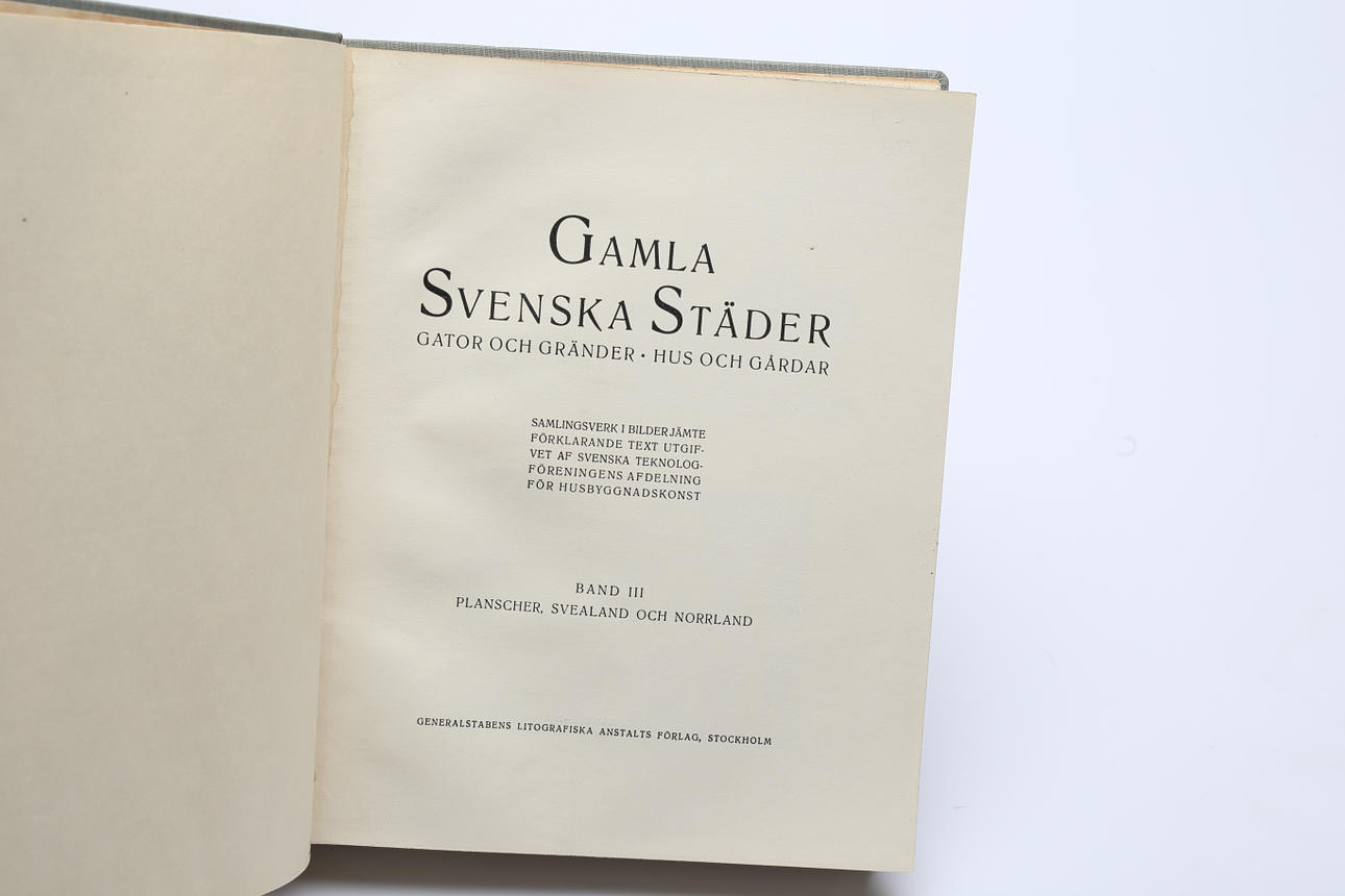 Bind I: Tekst, bind II Planscher, Götaland, bind III Planscher, Svealand og Norrland.