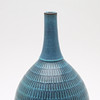 Oval form med smal hals, imponeret dekoration, med glasur i turkis og blå. Dateret 1965, udskåret drejer signatur "Stefano". Signeret Stig L og mærket Gustavsberg. Højde ca 40 cm.