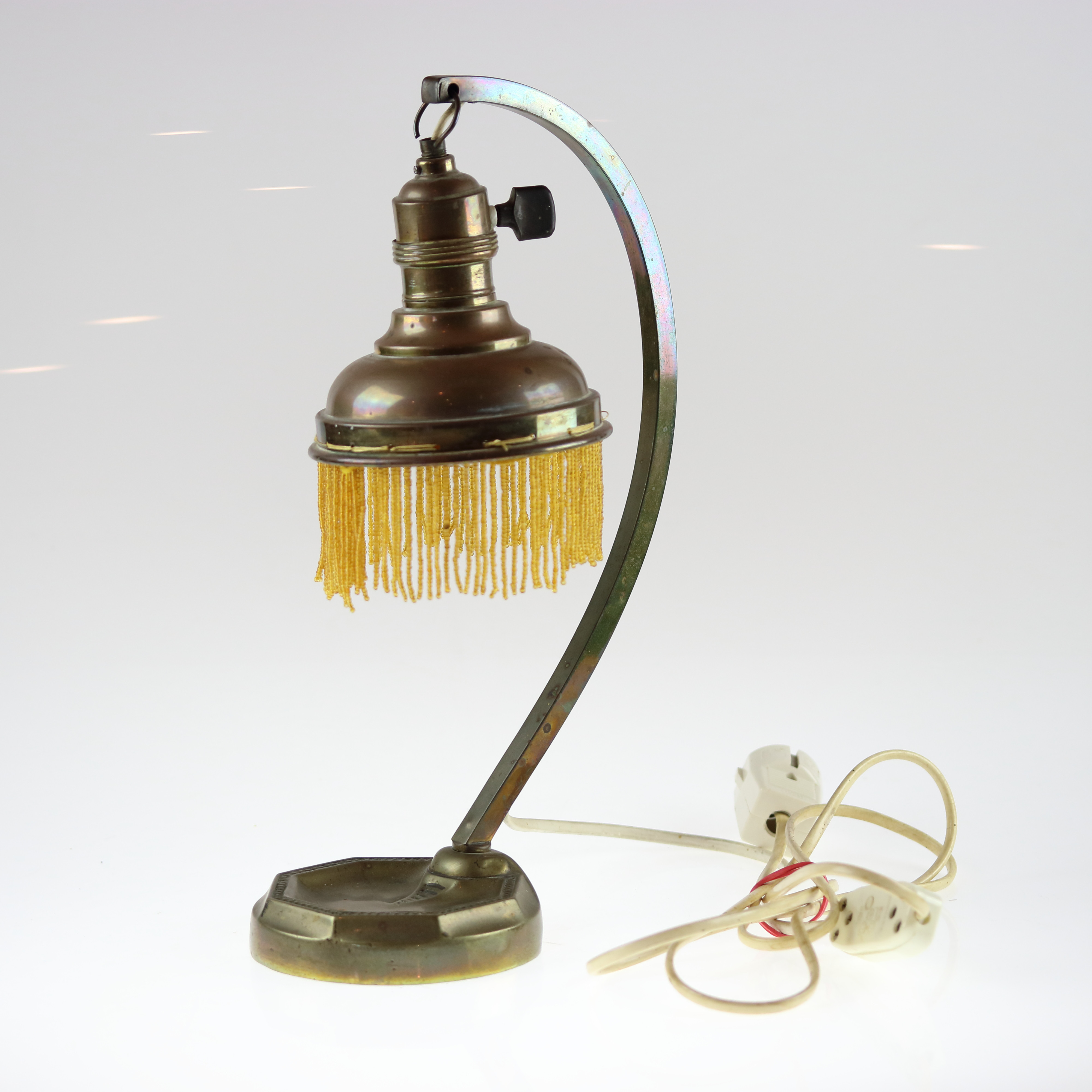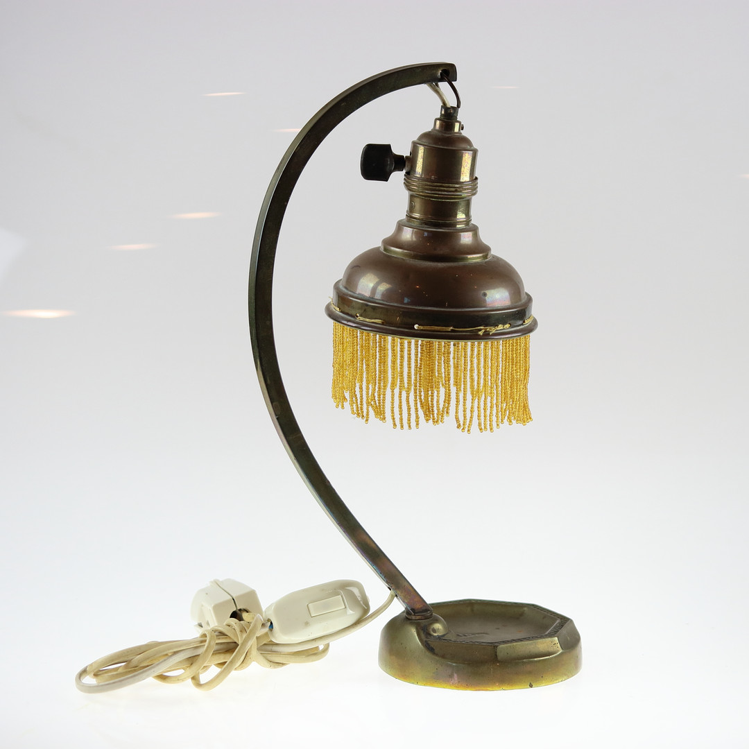 1301883. BORDLAMPE, med frynser, messing.