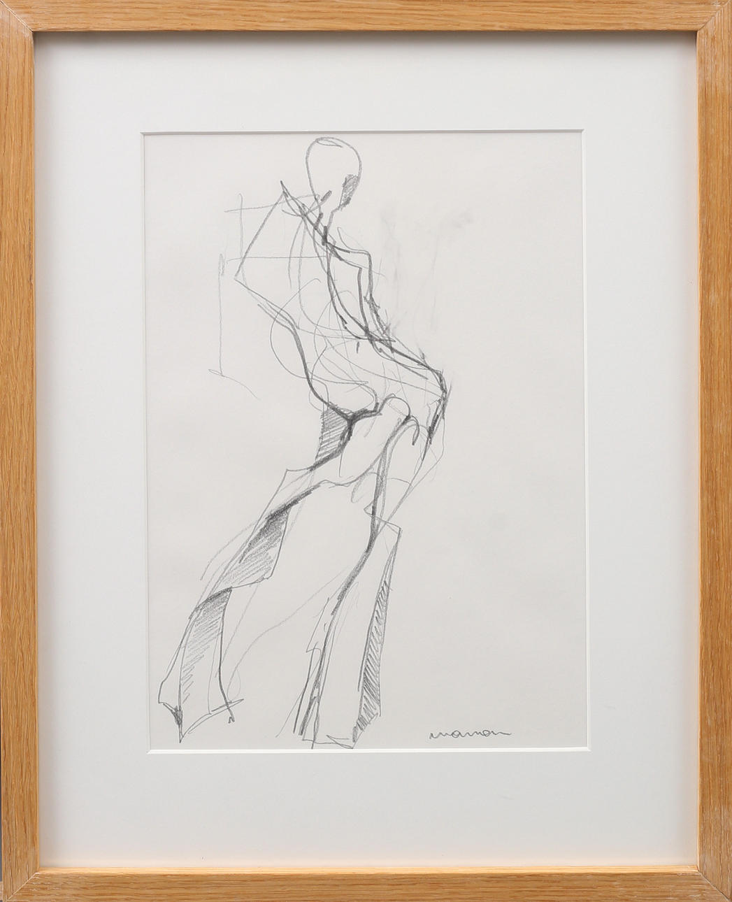 PETER MANDL. Poserende kvinde, tegning, signeret.