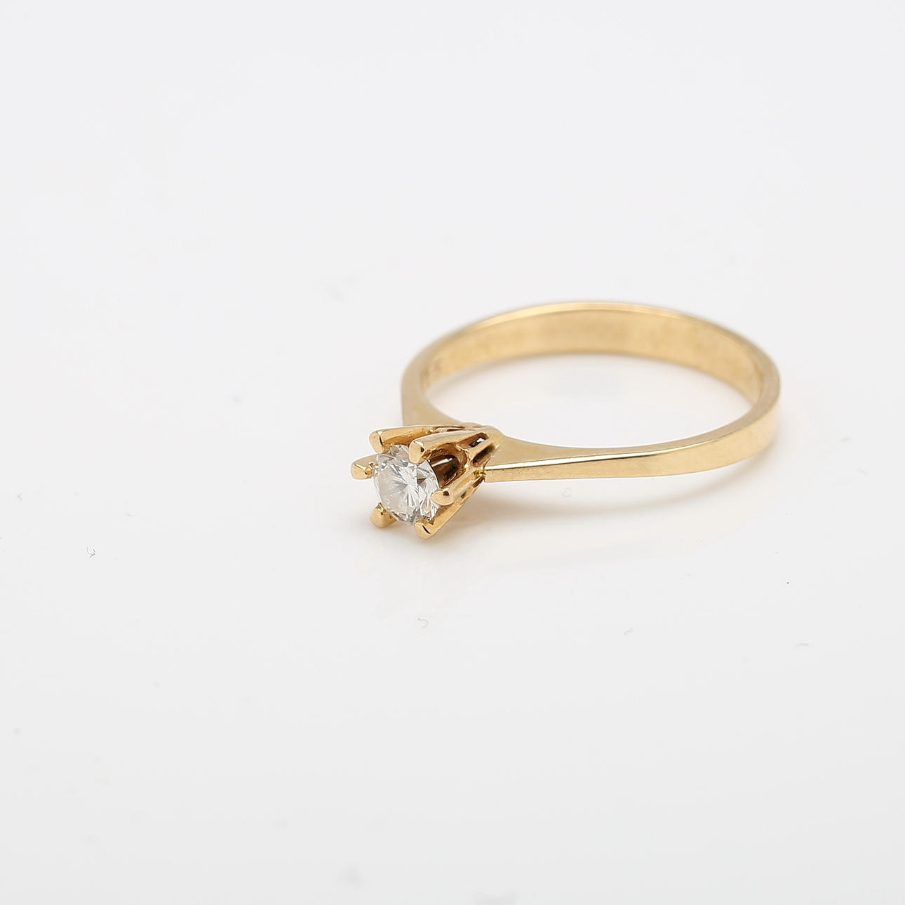 Med en brillant på ca 0,24 ct. Ringstørrelse ca 16,75 mm.