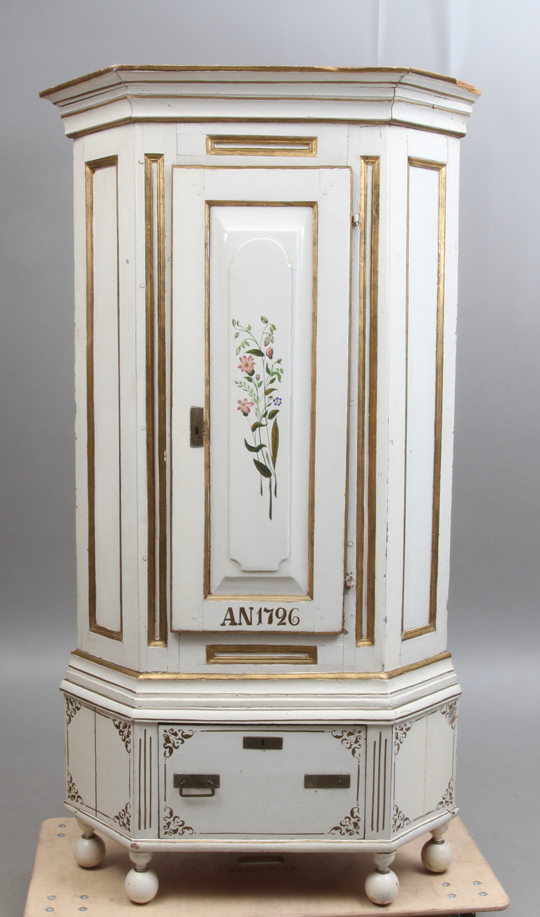 130376. HJØRNESKAB, hvidmalet, 1700-tallet.