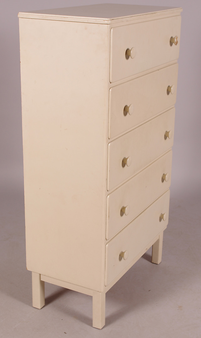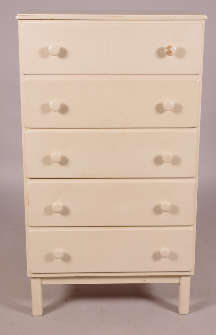 130420. Kommode, 5-boks, hvidmalet, 1970'erne.