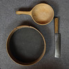 Håndtag træ Beklædning træ med udskåret håndtag Vaskebræt, træ og metal Si i fejeteknik Purépresse, trug med rulle, træ og metal.